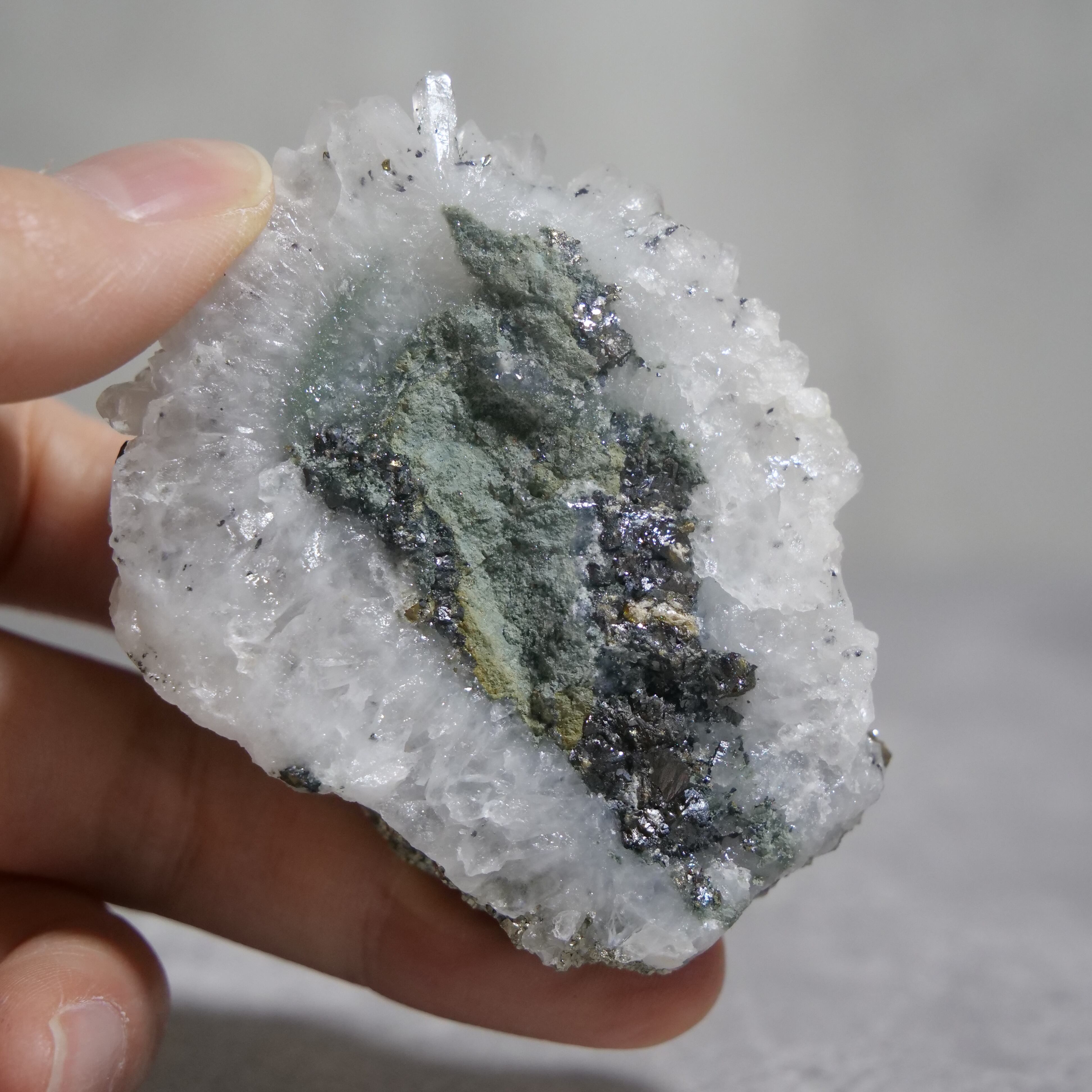 鉱物的な見所も沢山あり、また雰囲気・質感・共に正反対の鉱物が共生することで魅力的な対比が生まれ、アーティスティックな一面も持っています。