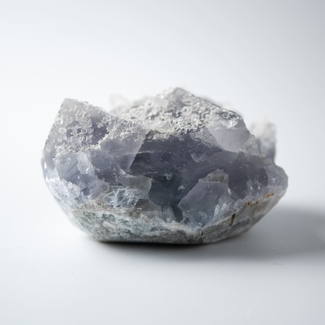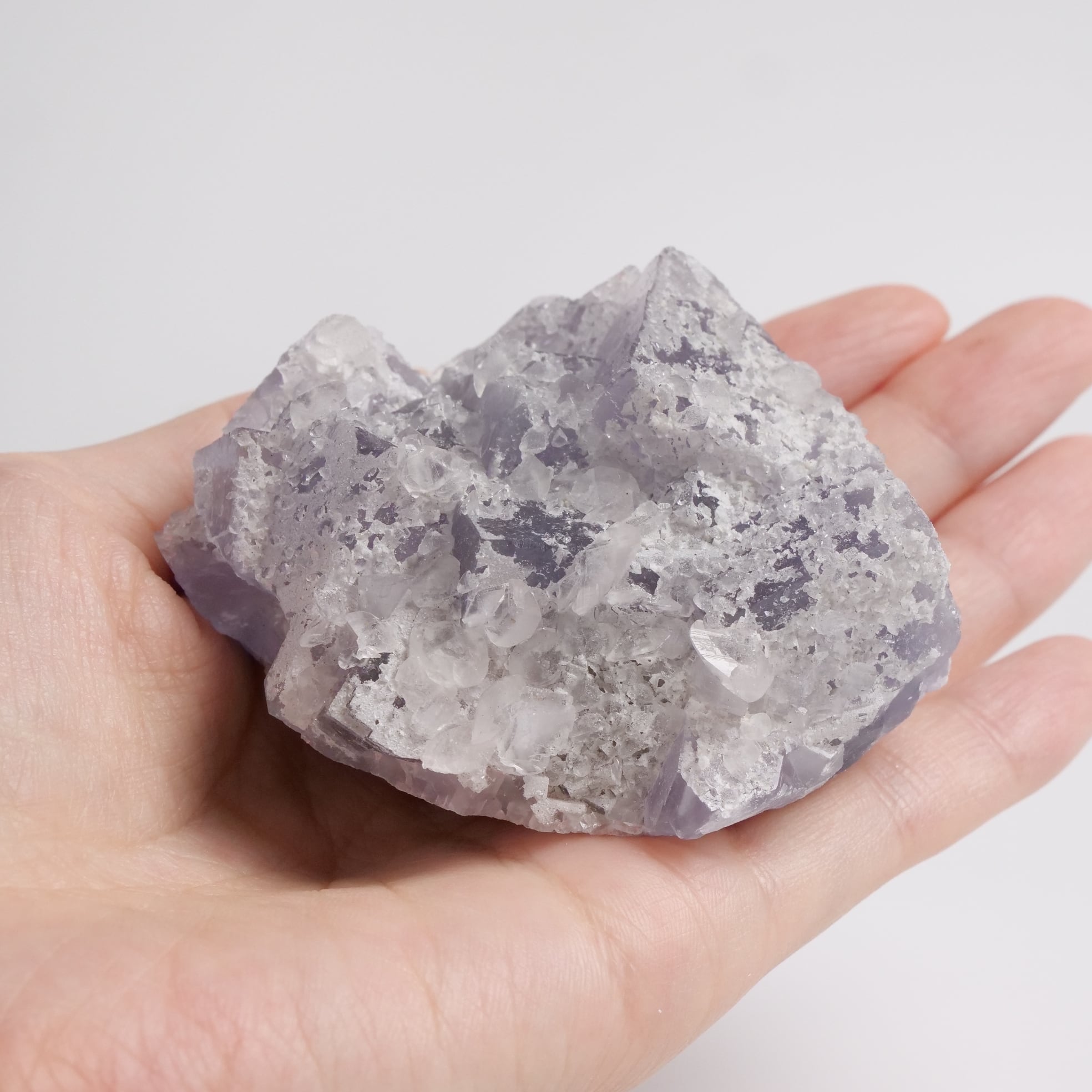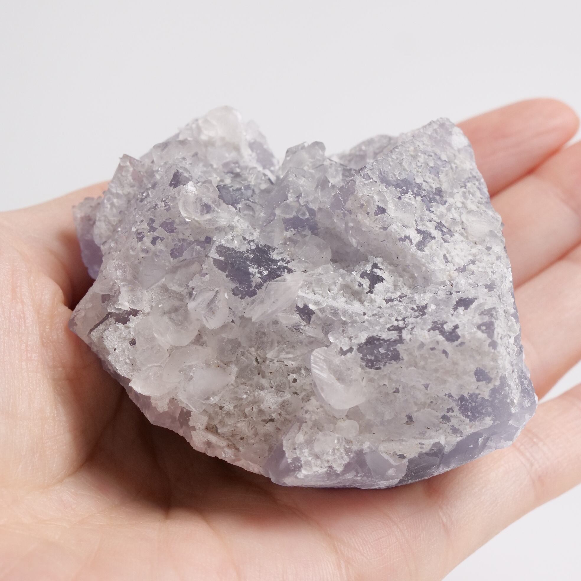 フローライトの柔らかな色合いが優雅な雰囲気をもたらし、輝くカルサイトがより一層華やかさを添えています。