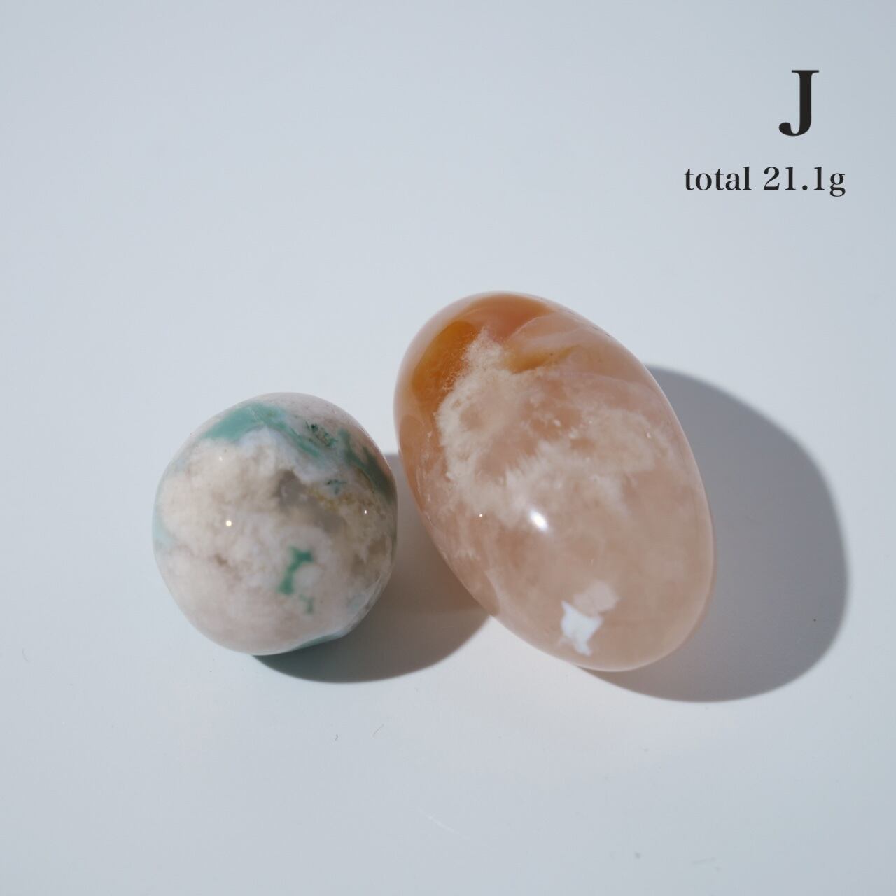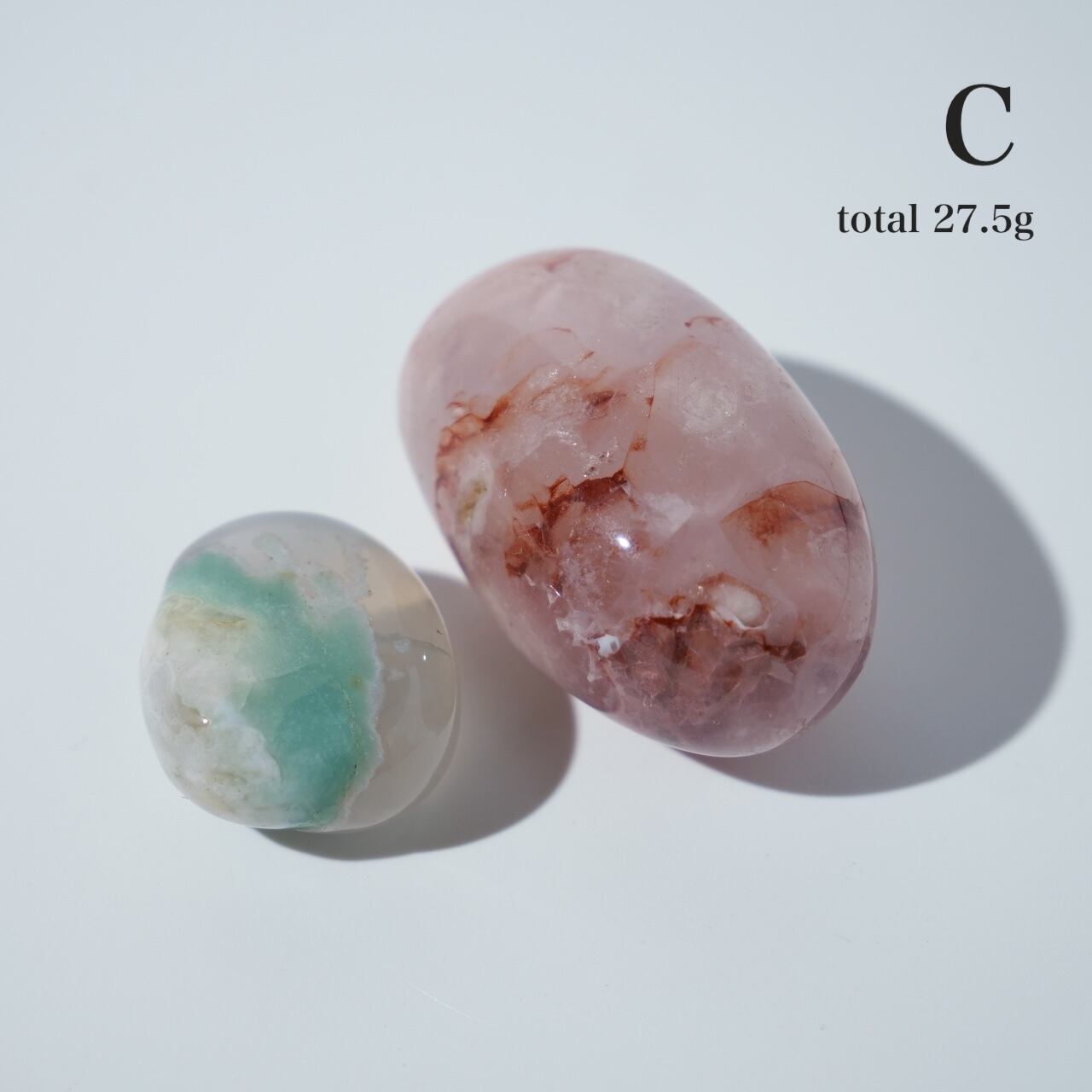 フラワーアゲート グリーン & ピンク / タンブル 握り石【2個set】