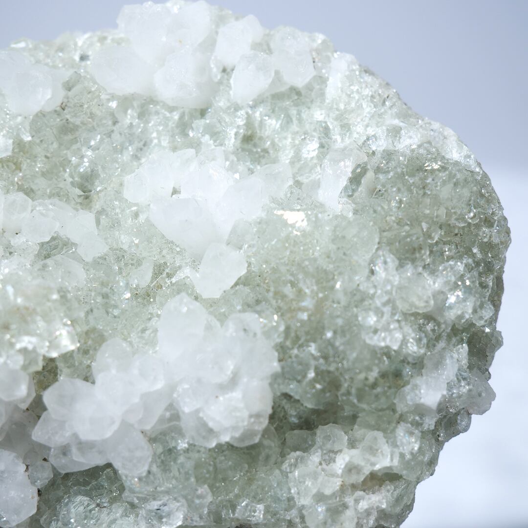 光を浴びると結晶たちがキラキラと輝き、森や草原の中での春のような爽やかさが思い浮かびます。