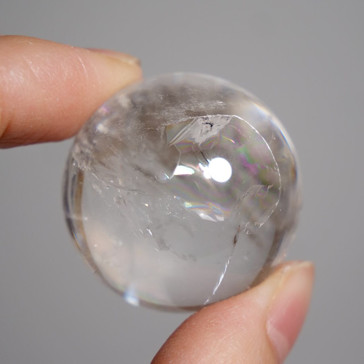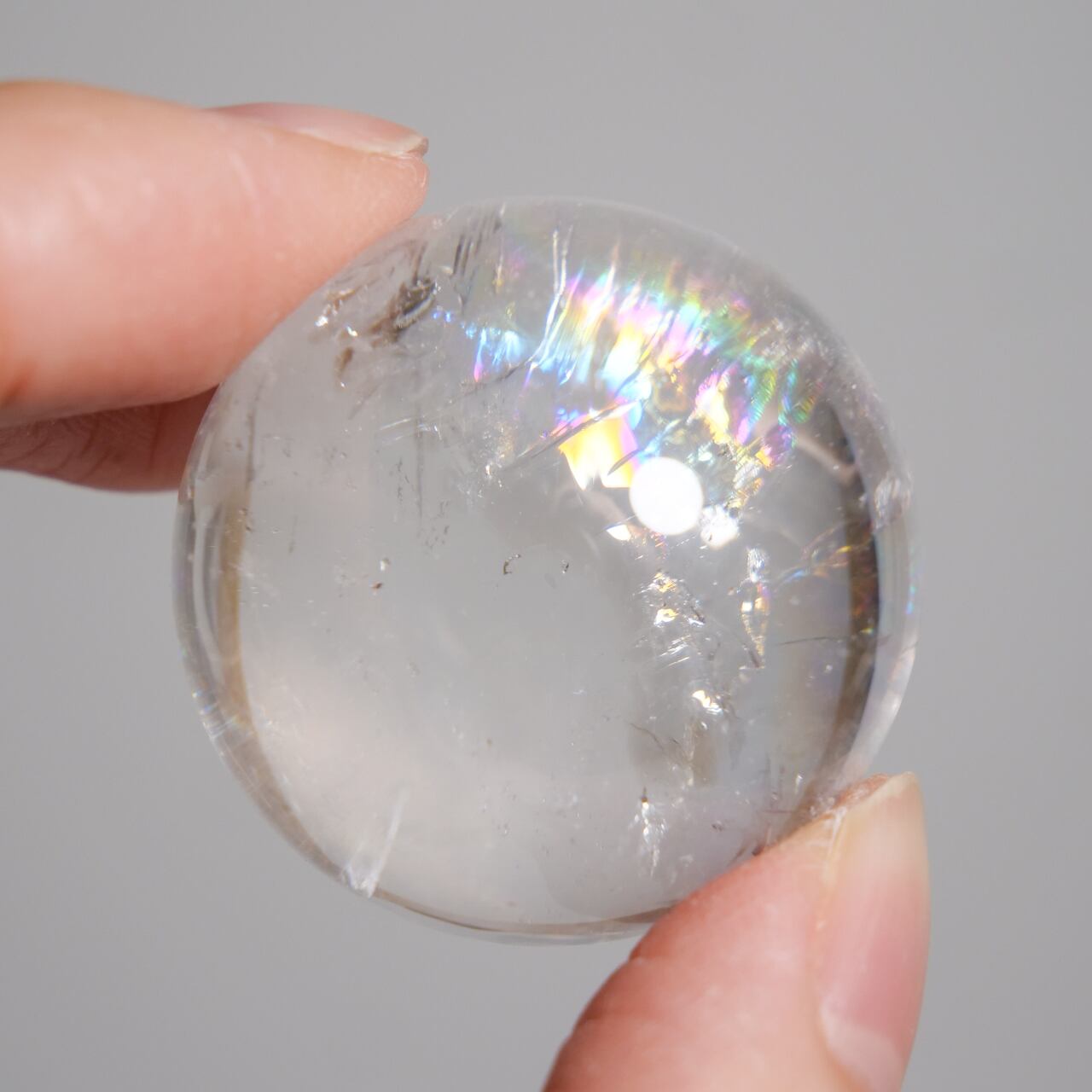 虹入り水晶とも呼ばれるこのお石は、通常の水晶とは異なり内部に微細な「クラック」を抱えています。