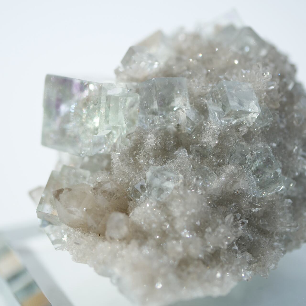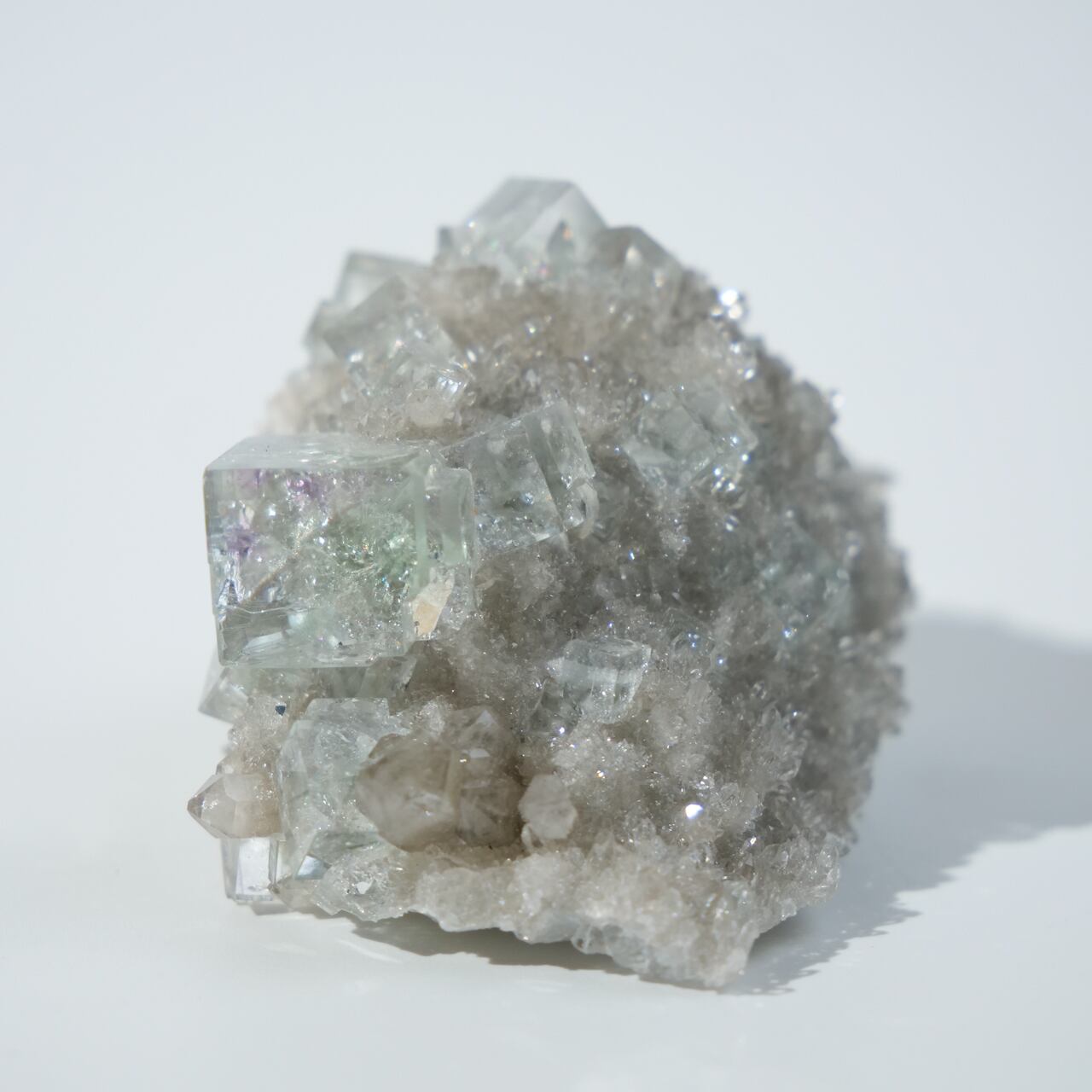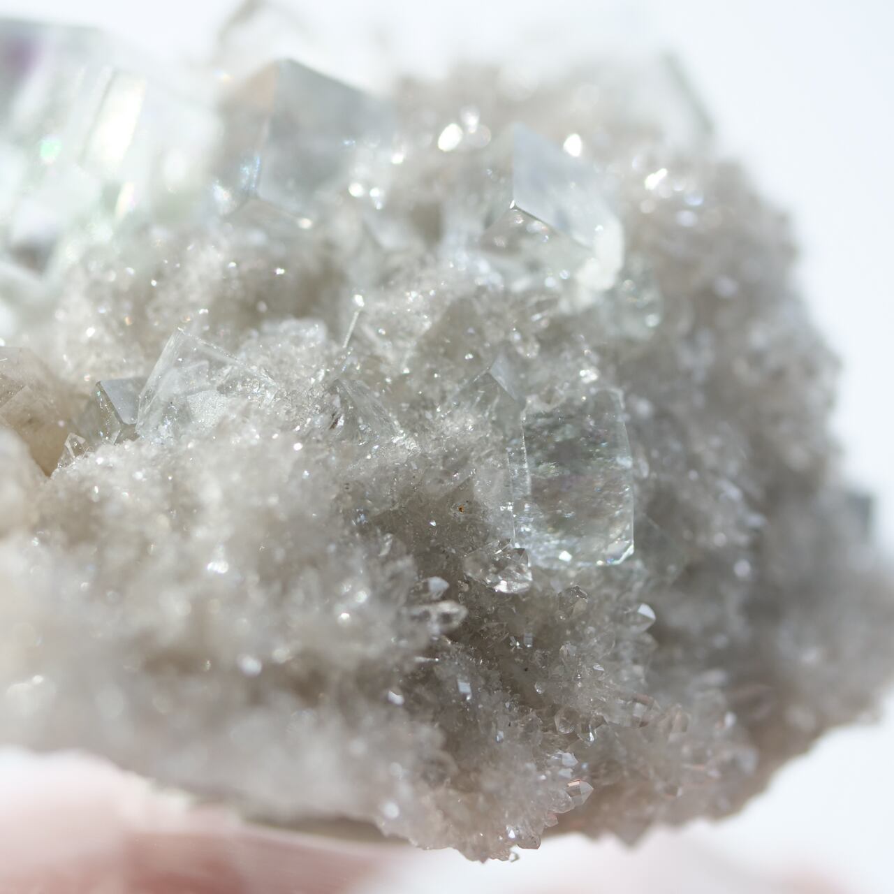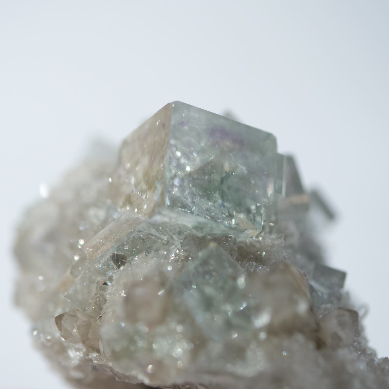 一番大きな結晶にはほんのりとパープルが混ざり、虹が輝きます。