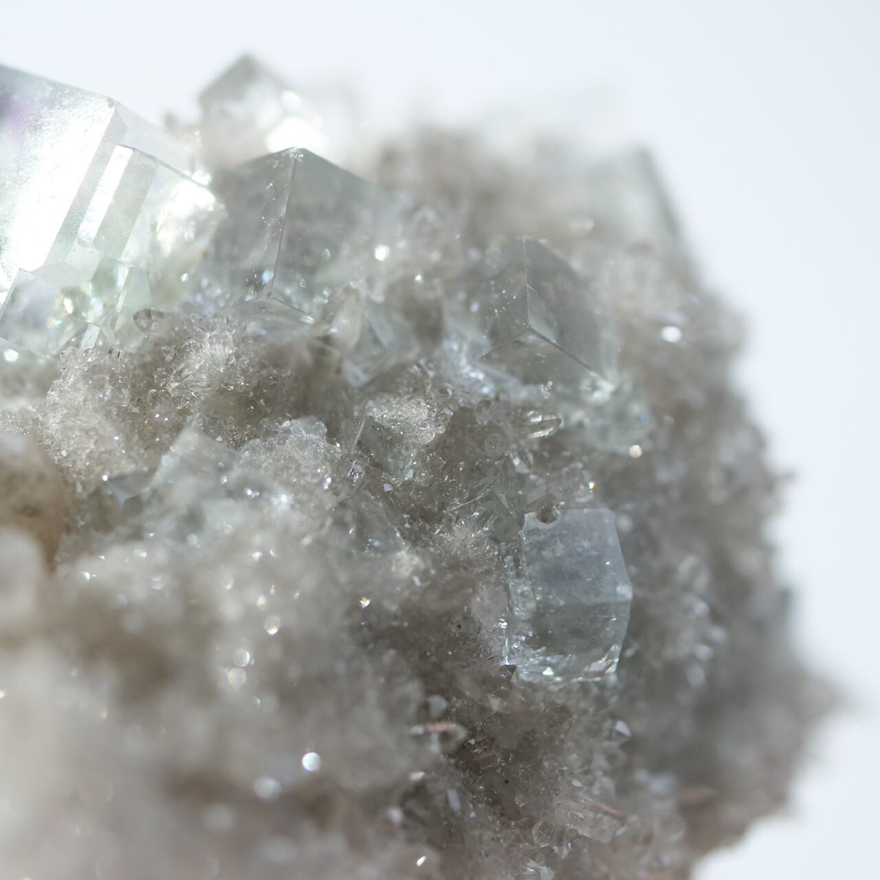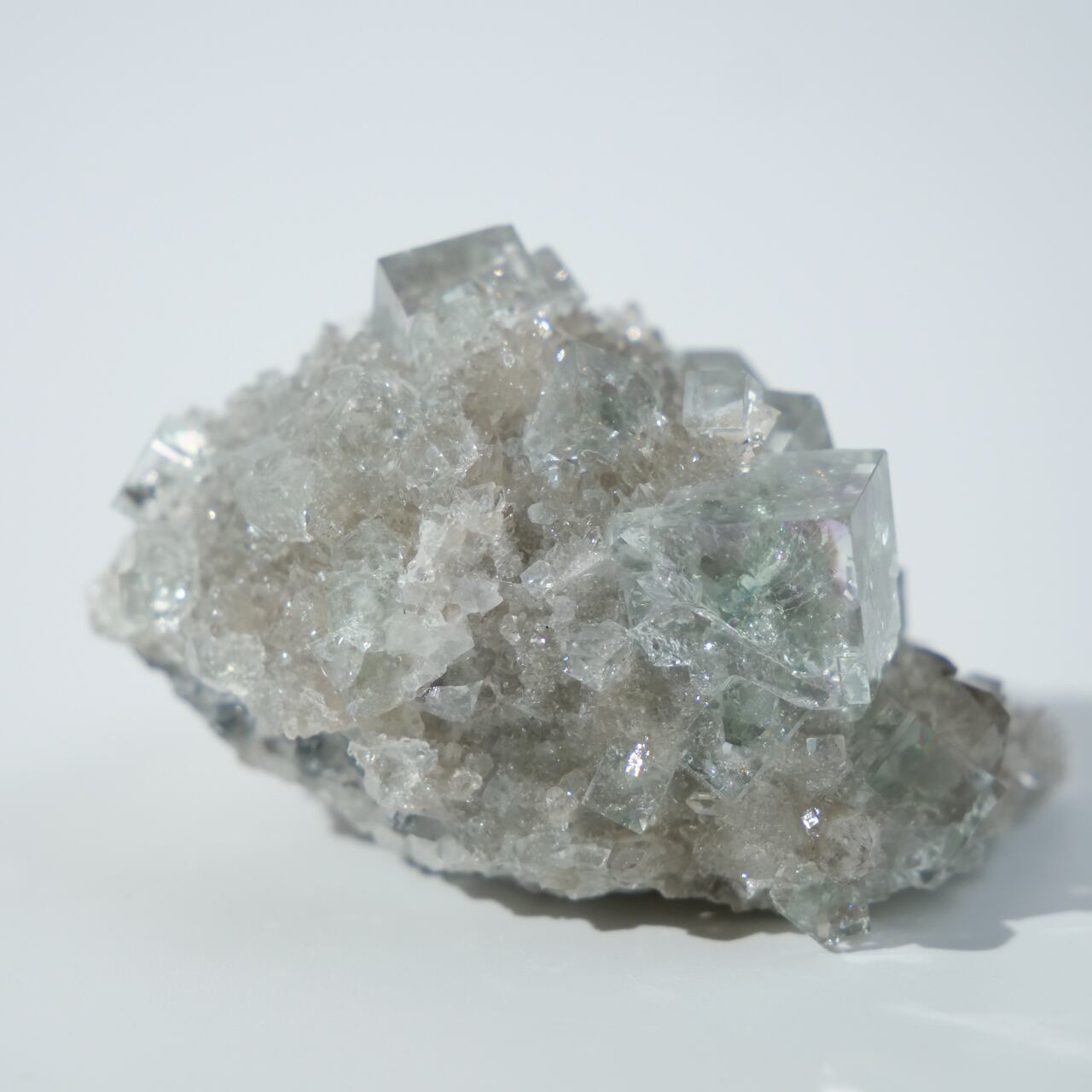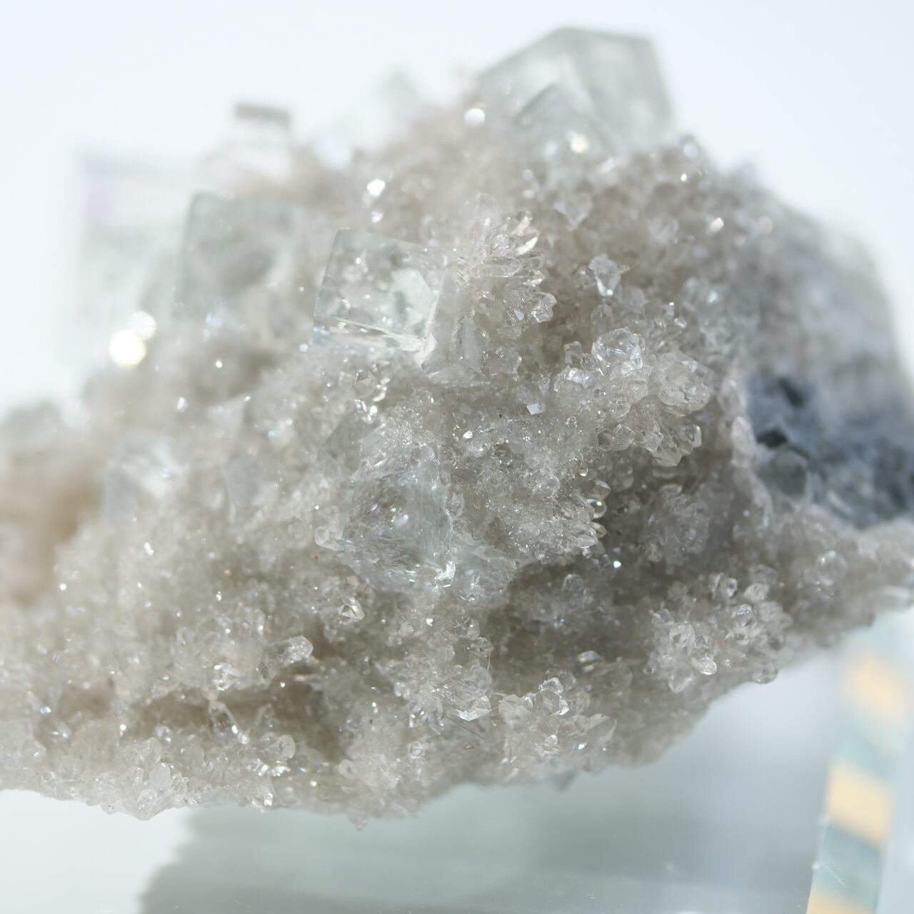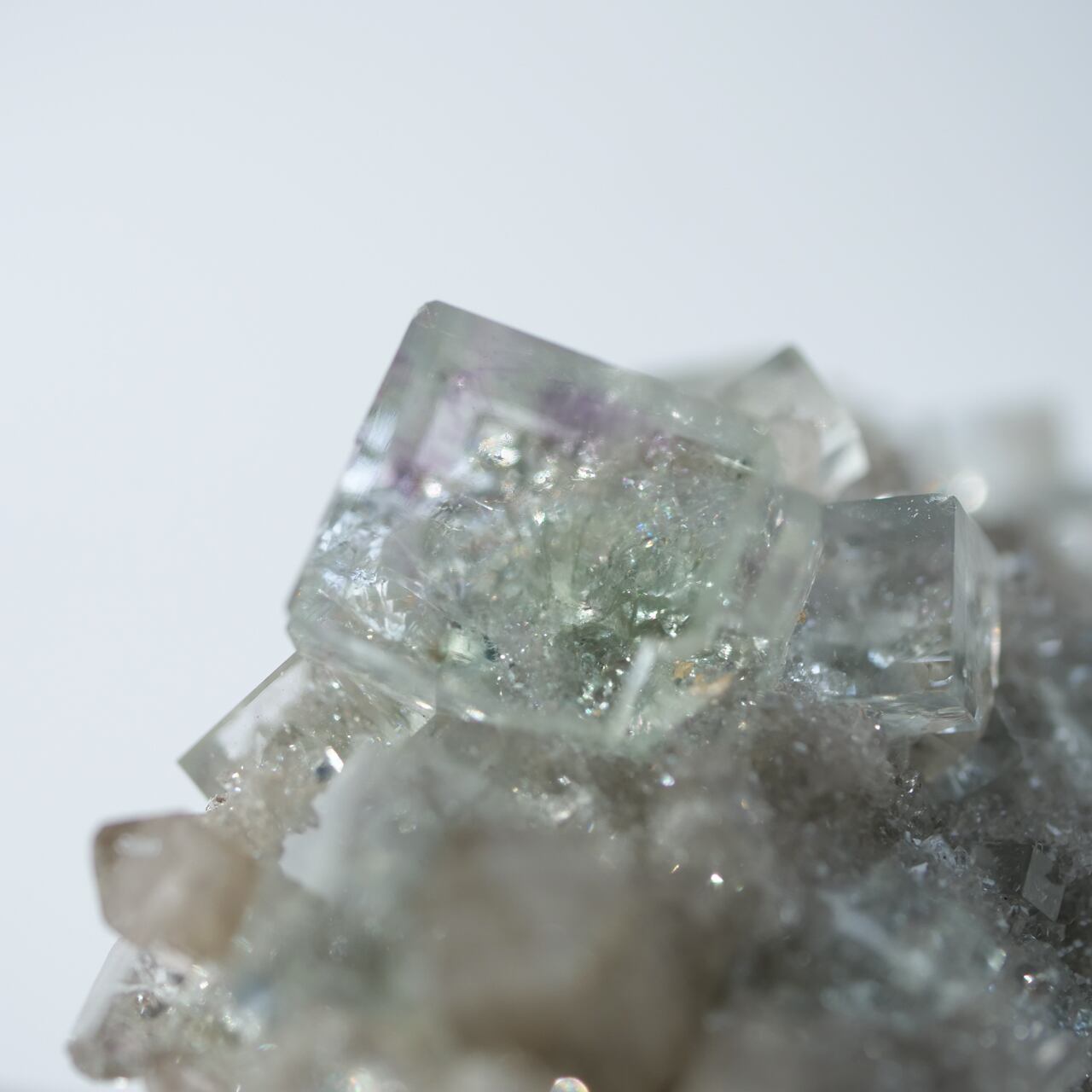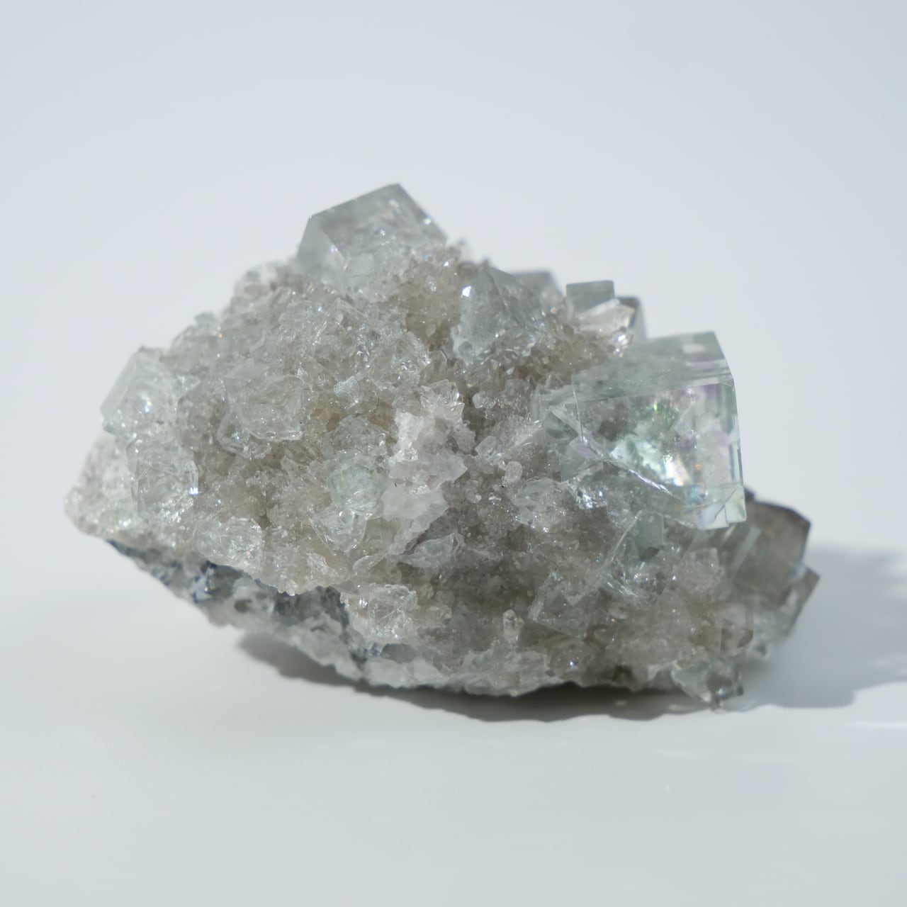 一番大きな結晶にはほんのりとパープルが混ざり、虹が輝きます。