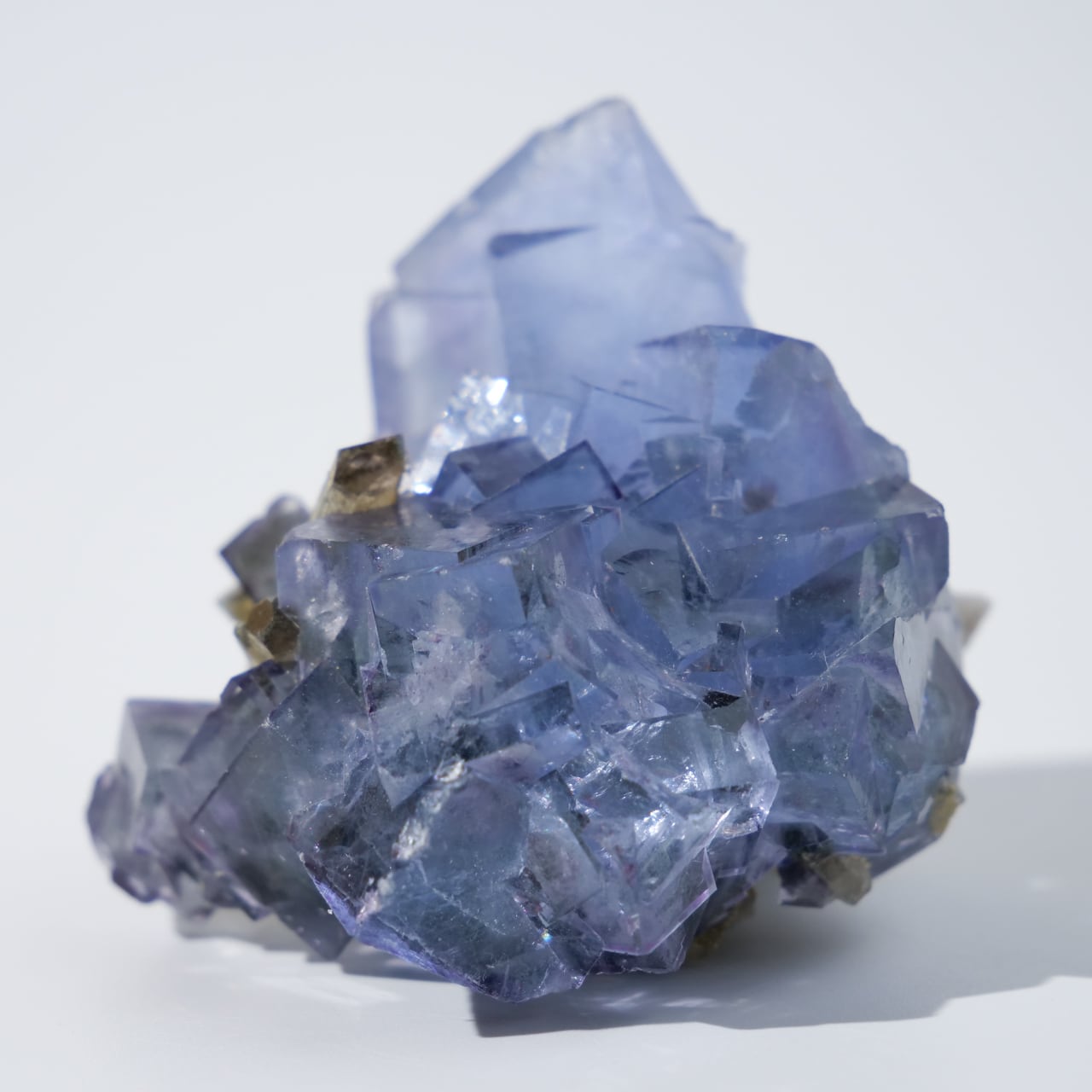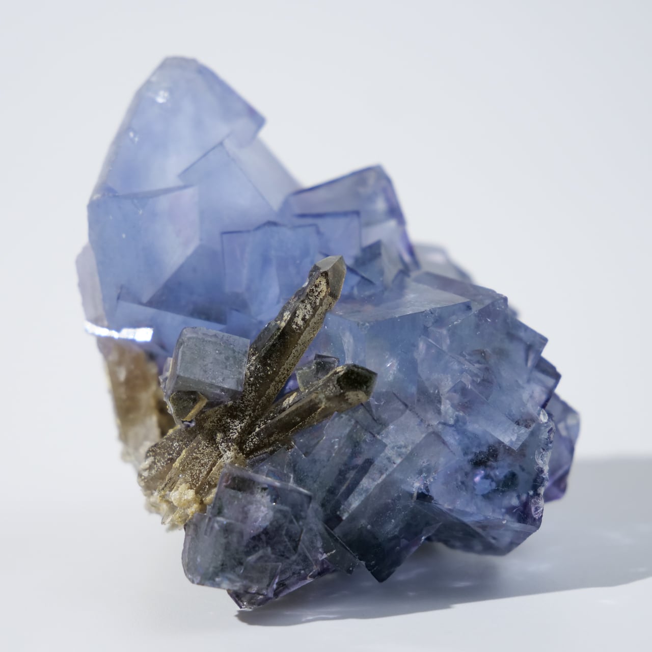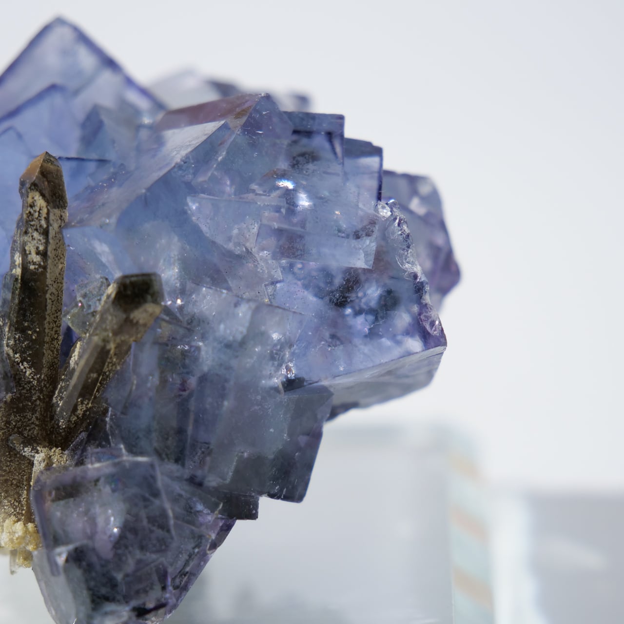 こちらはブルーカラーのフローライトと、スモーキークォーツの共生鉱物。
