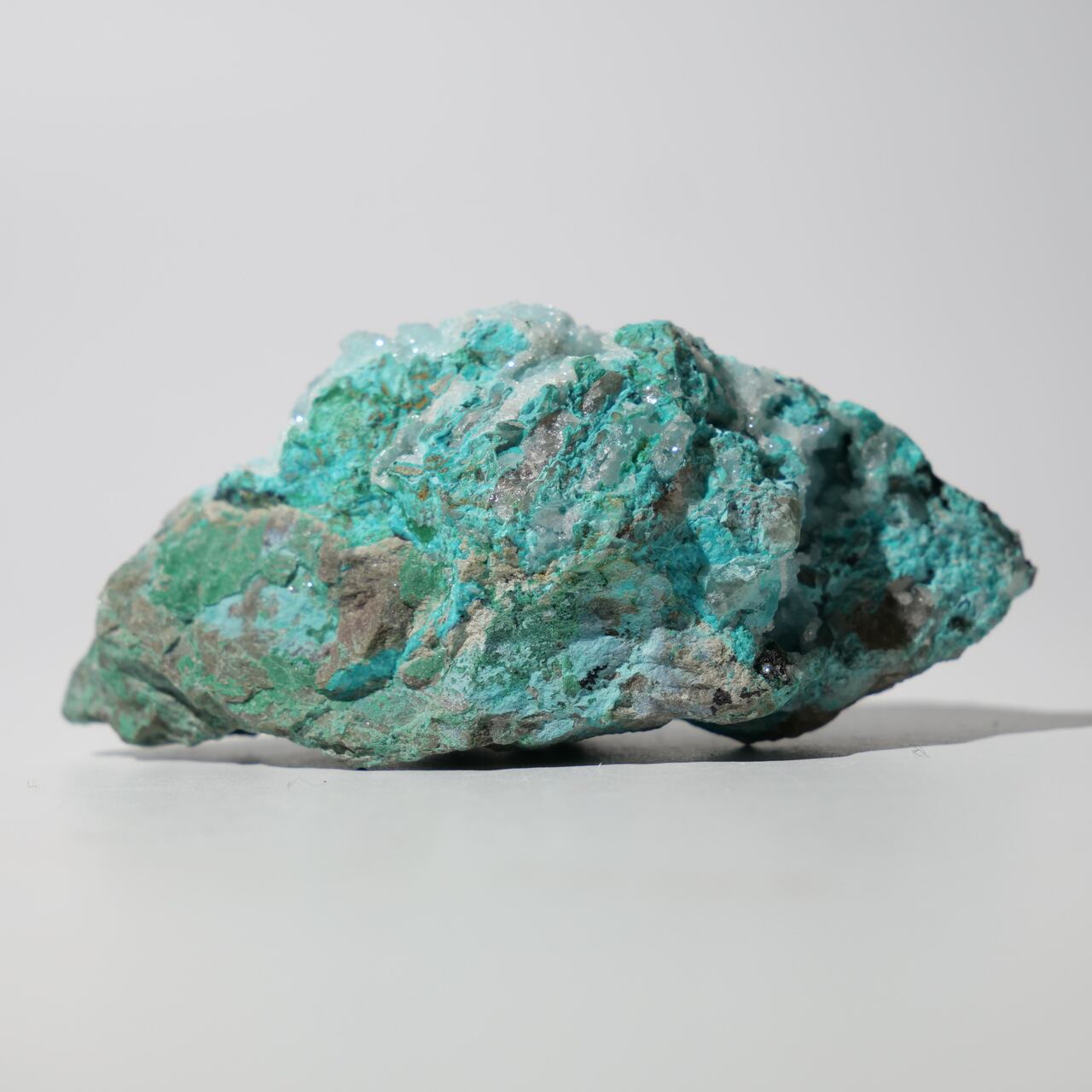 こちらはそのクリソコラの表面に石英(水晶)が共生しています。