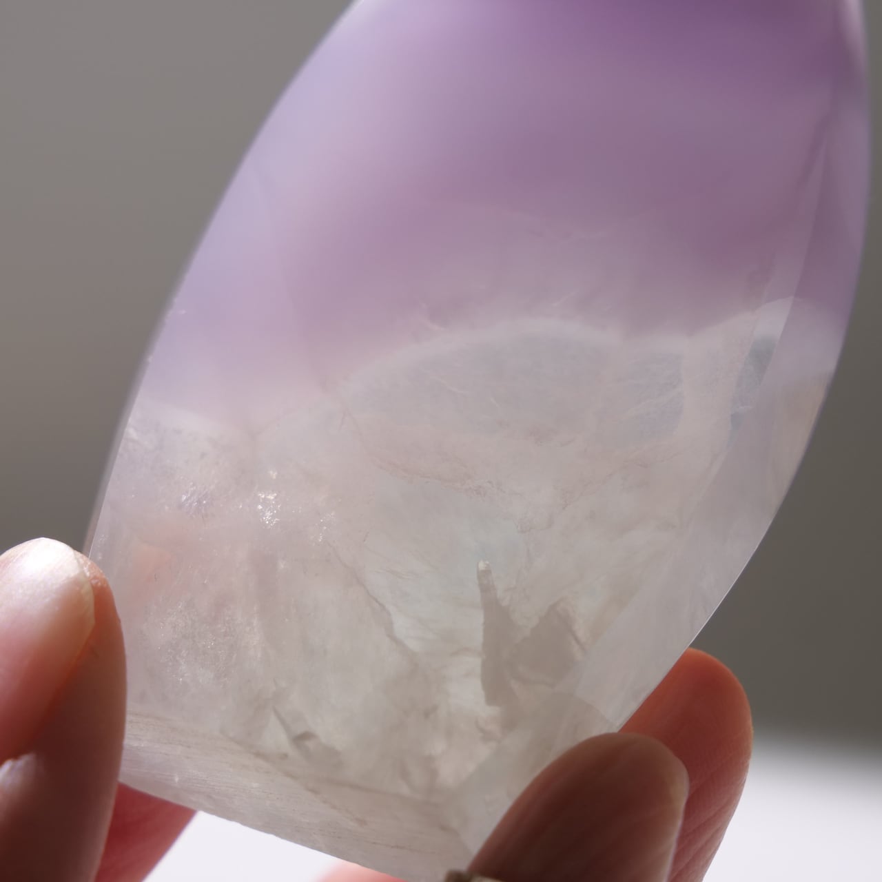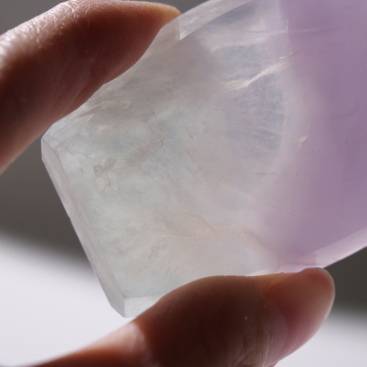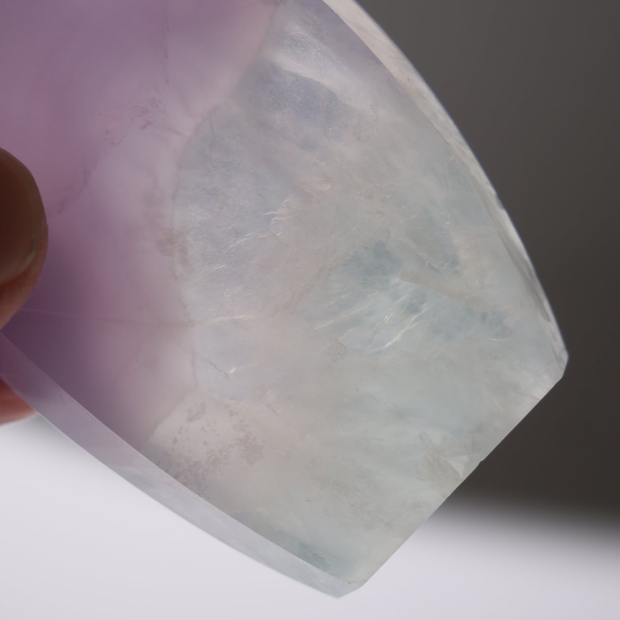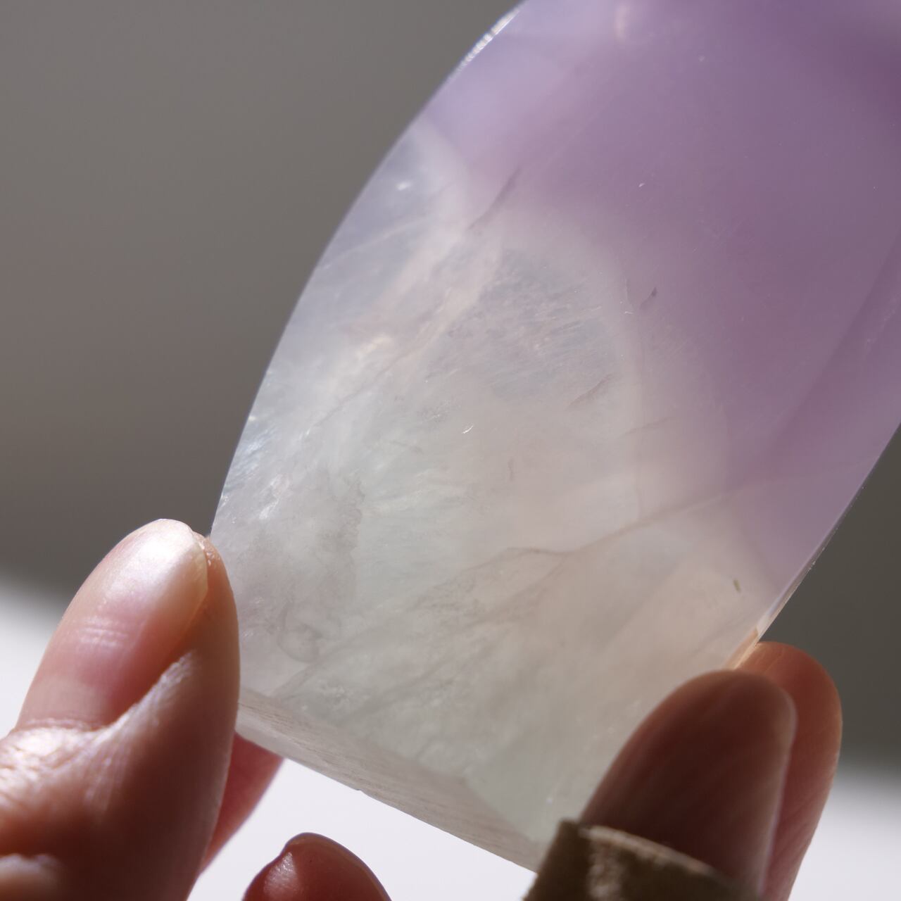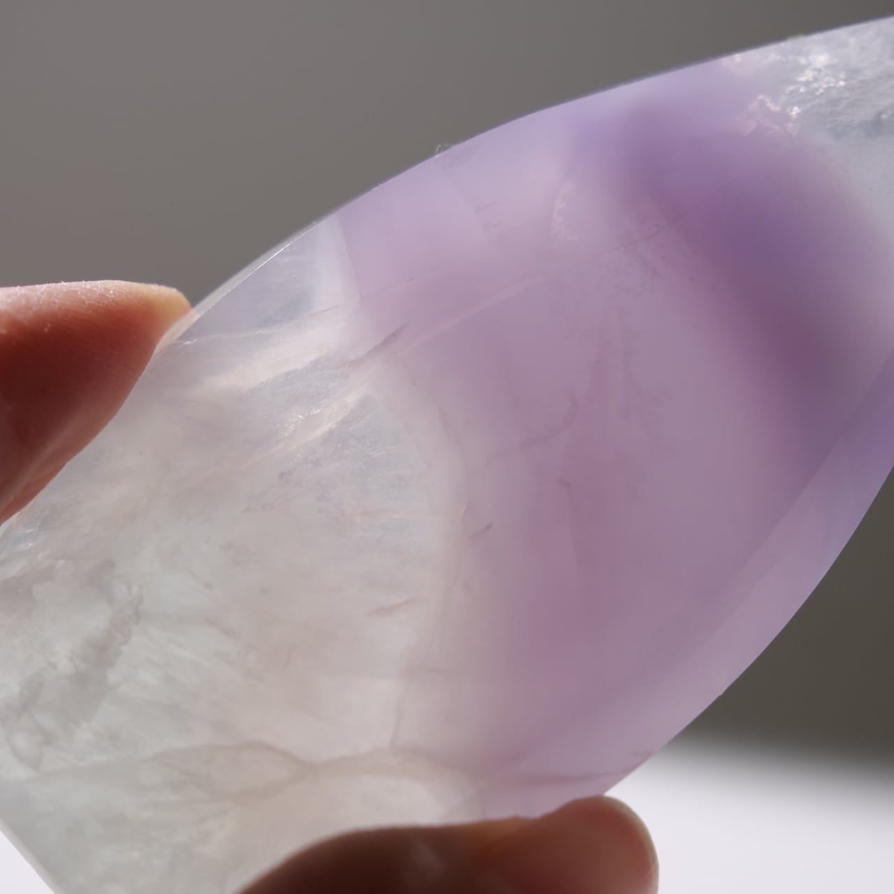 フローライトにも紫色のものがありますが、イットリウムフローライトの紫色はもっと薄く、優しげなラベンダー色をしています。