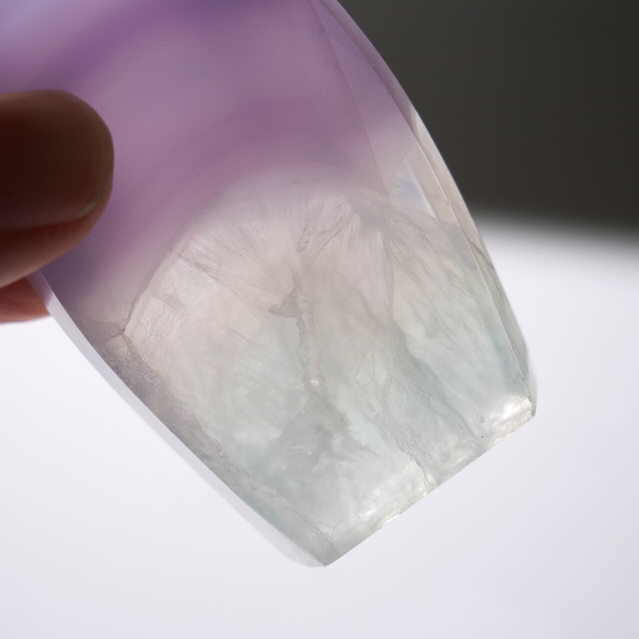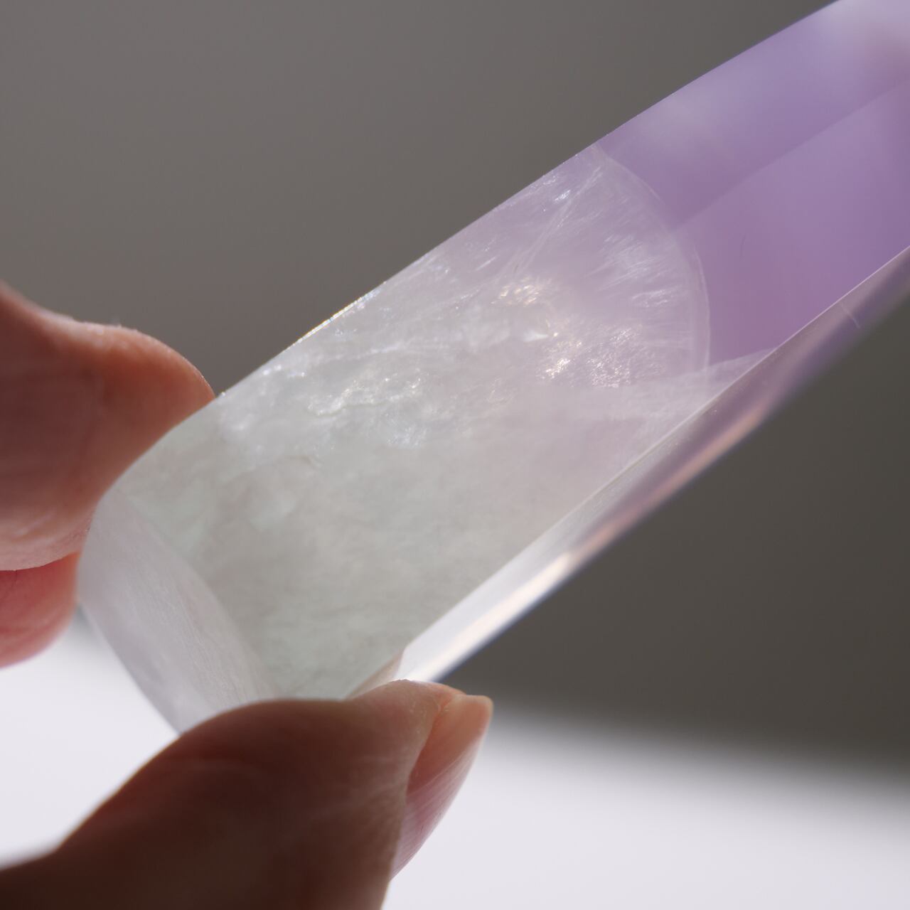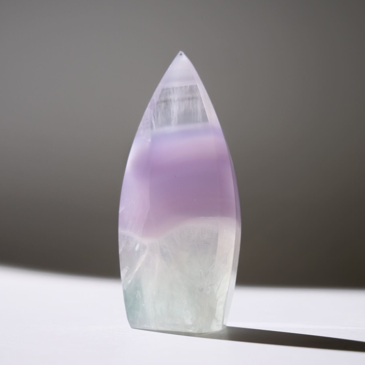 フローライトにも紫色のものがありますが、イットリウムフローライトの紫色はもっと薄く、優しげなラベンダー色をしています。