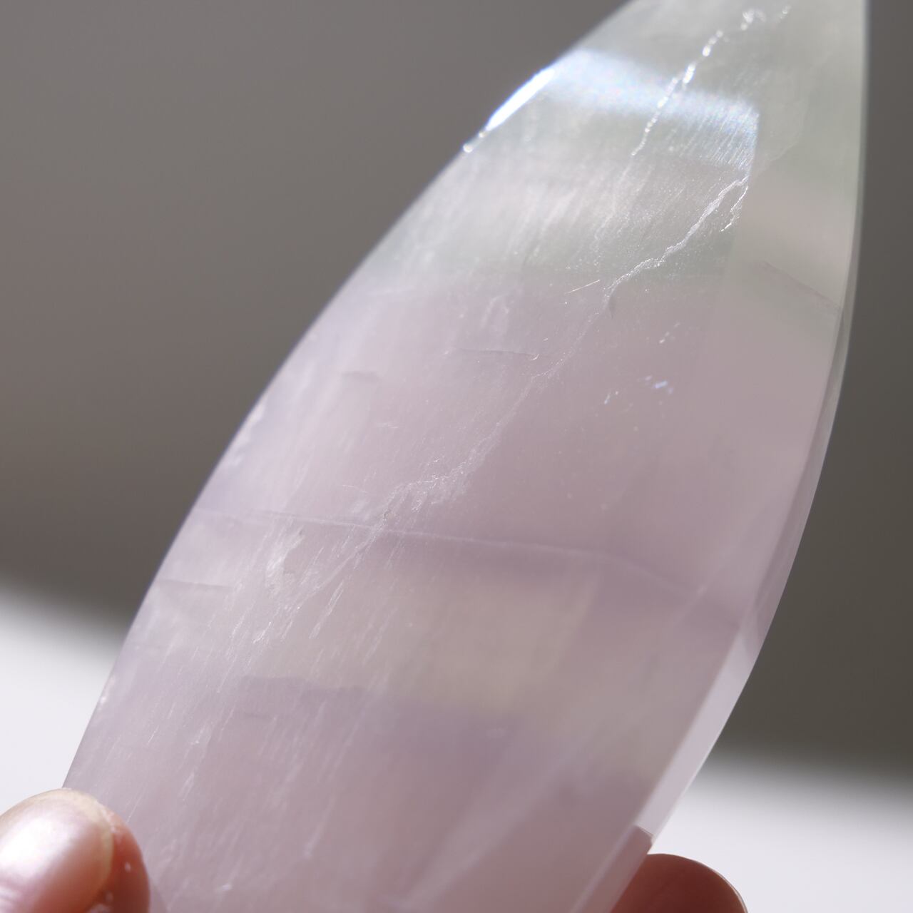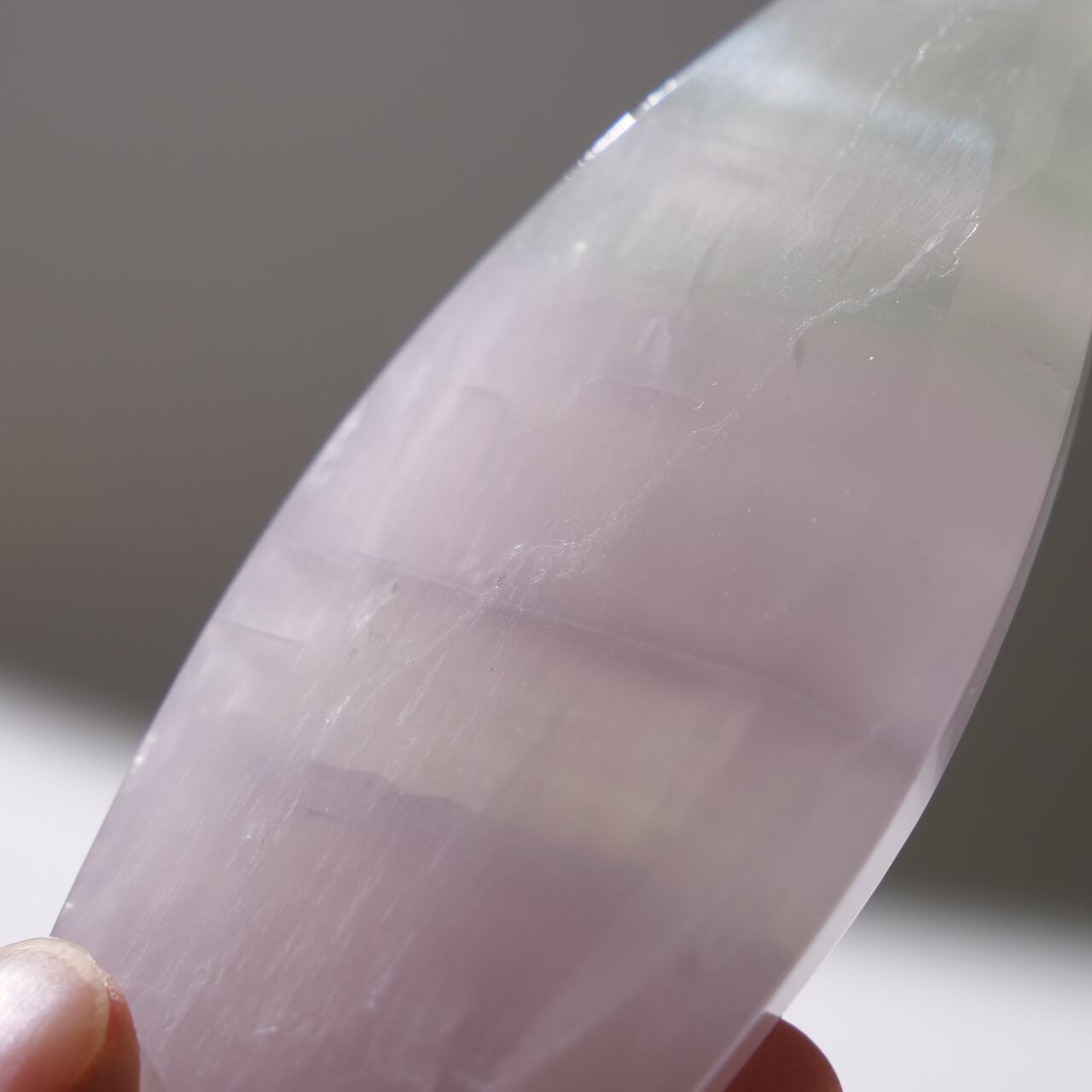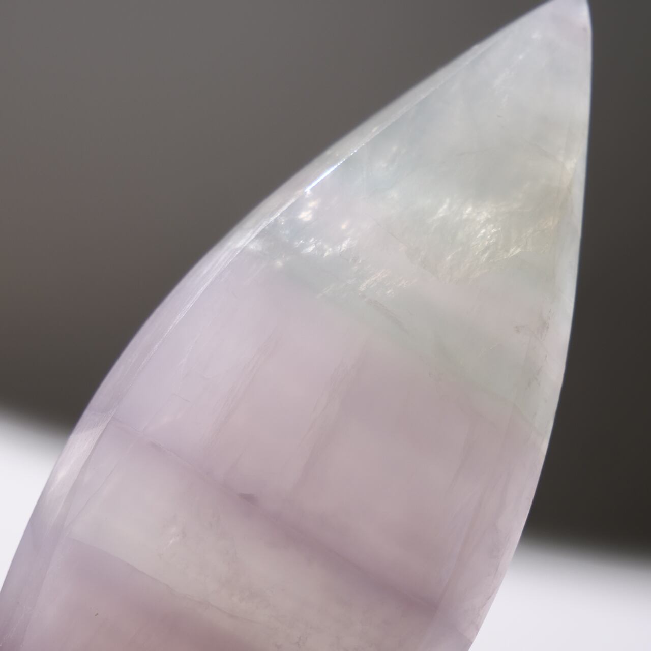 フローライトにも紫色のものがありますが、イットリウムフローライトの紫色はもっと薄く、優しげなラベンダー色をしています。