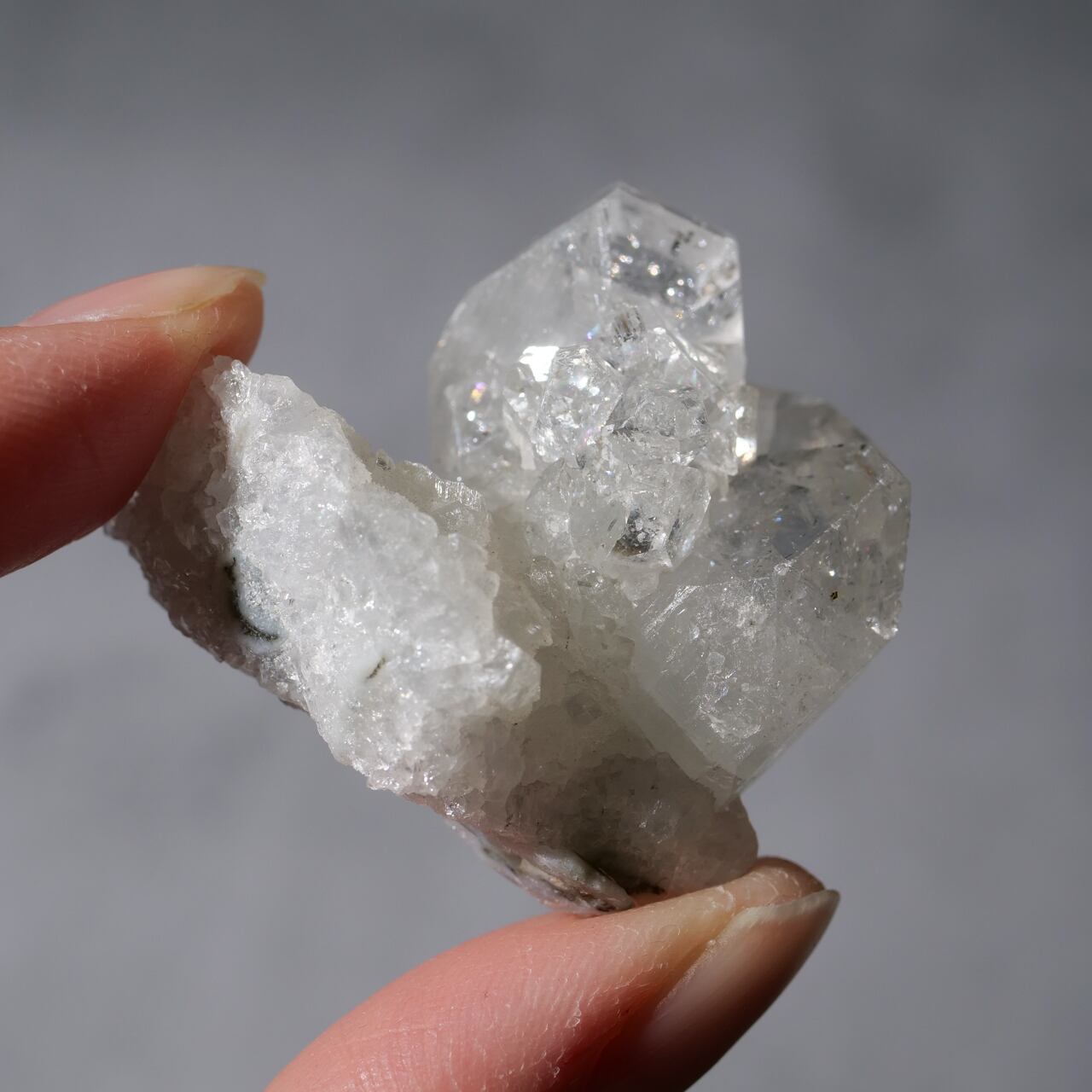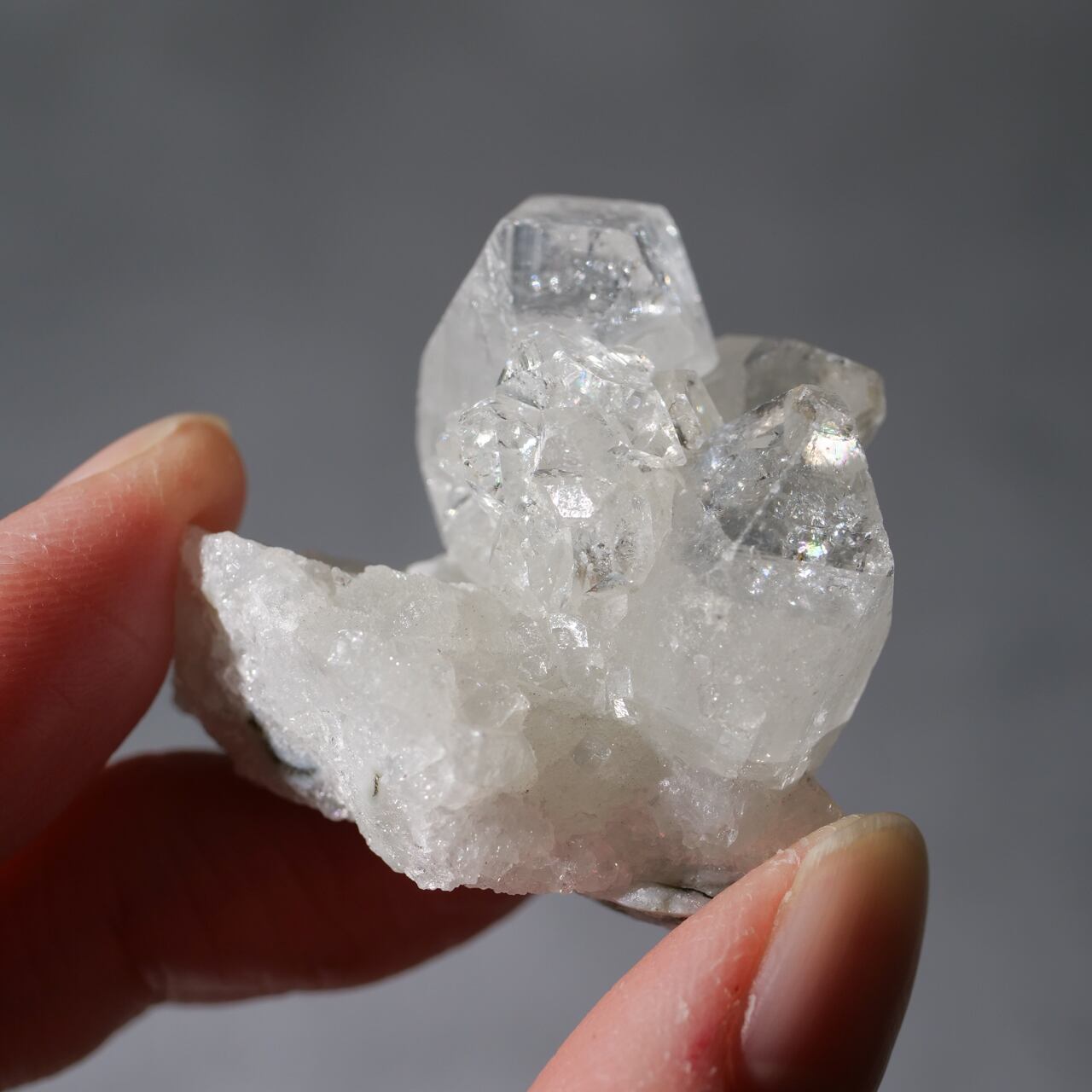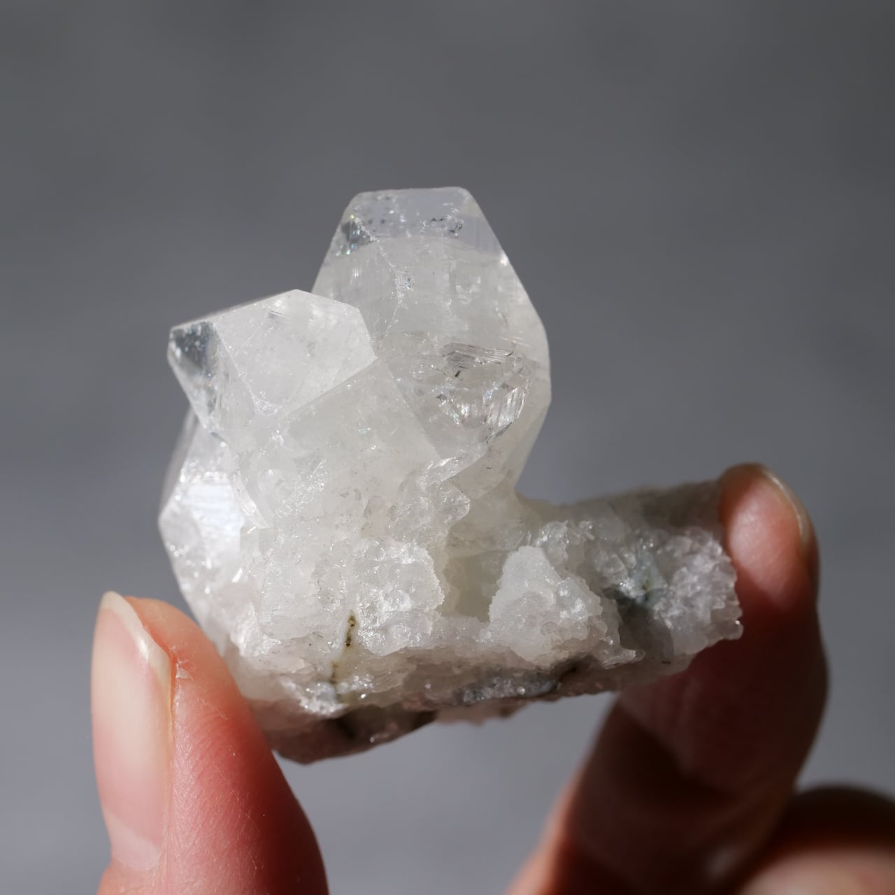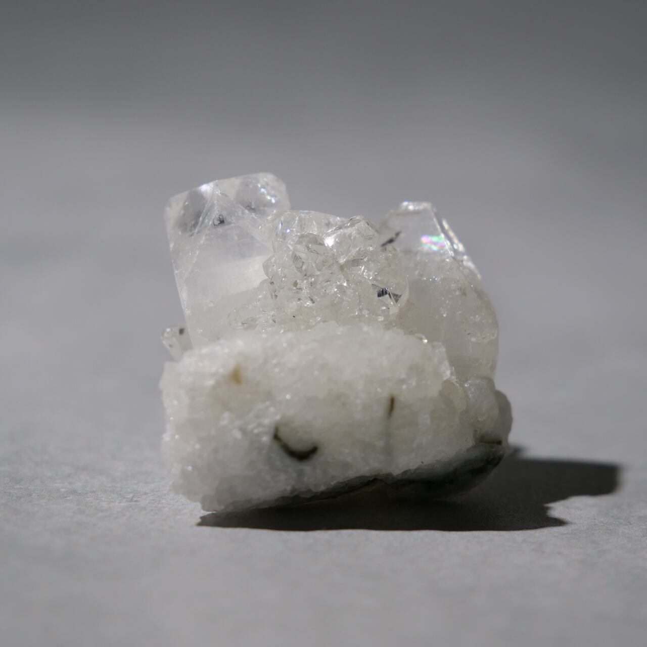 アポフィライトは、キラキラと白い輝きをもち、氷砂糖のような可愛らしさが特徴の石です。
