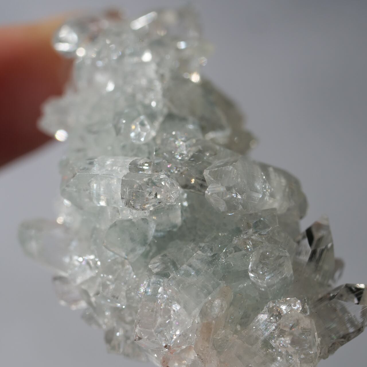 こちらは結晶の形・輝き・透明度が抜群に良いハイクォリティタイプで「ダイアモンドアポフィライト」とも呼ばれています。
