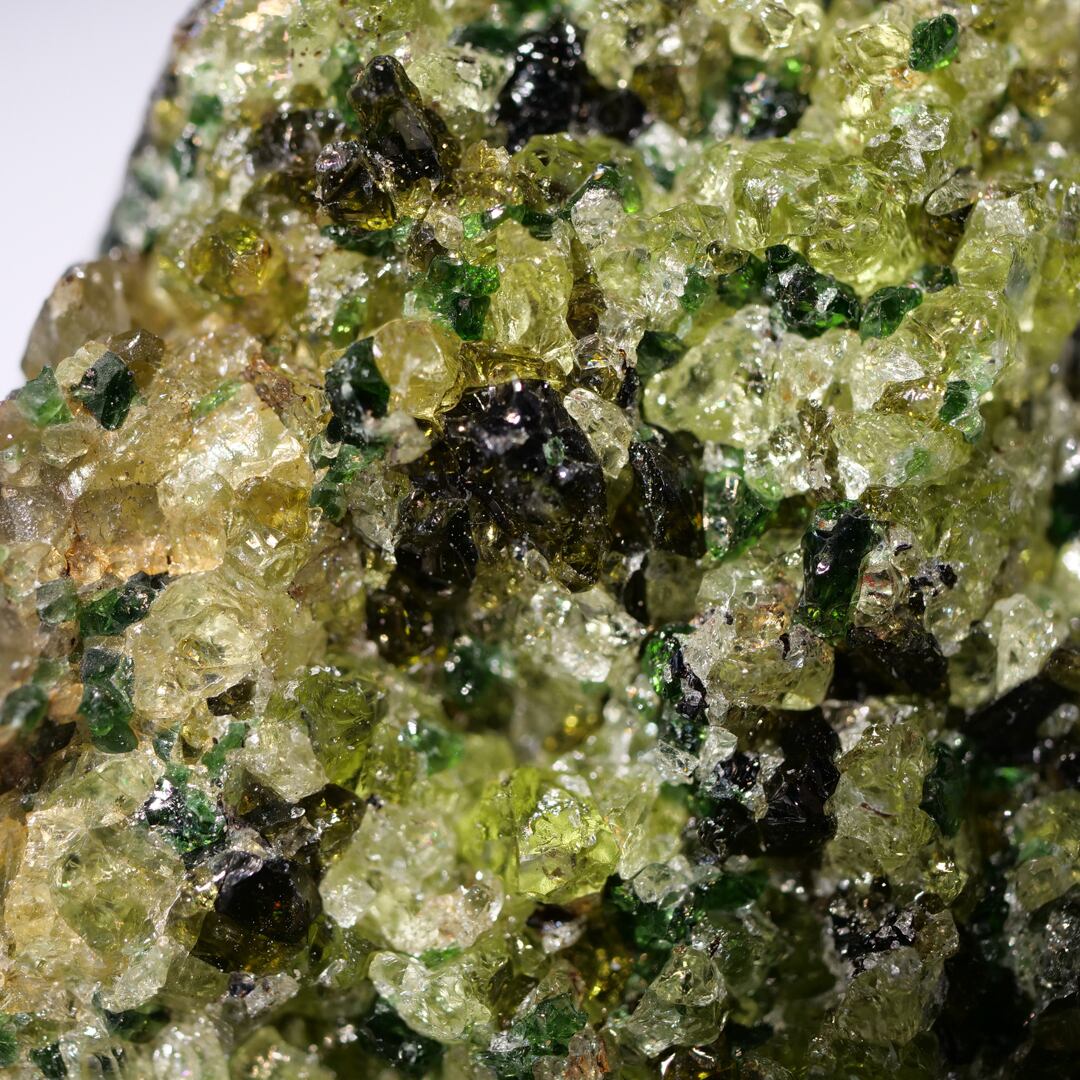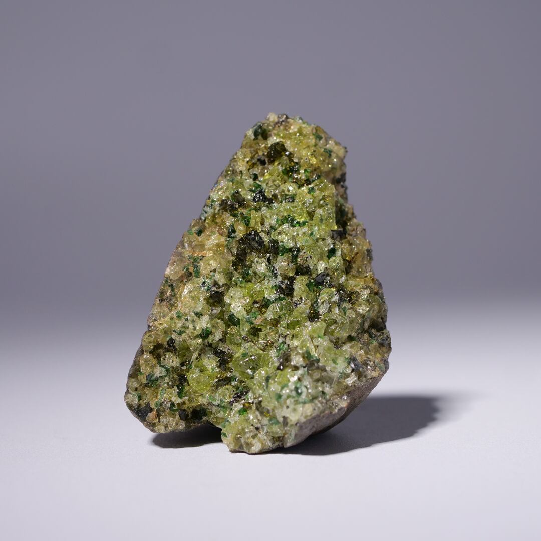 ペリドットの原石であるカンラン石は、地球深部の上部マントルを構成する主要鉱物の一つです。