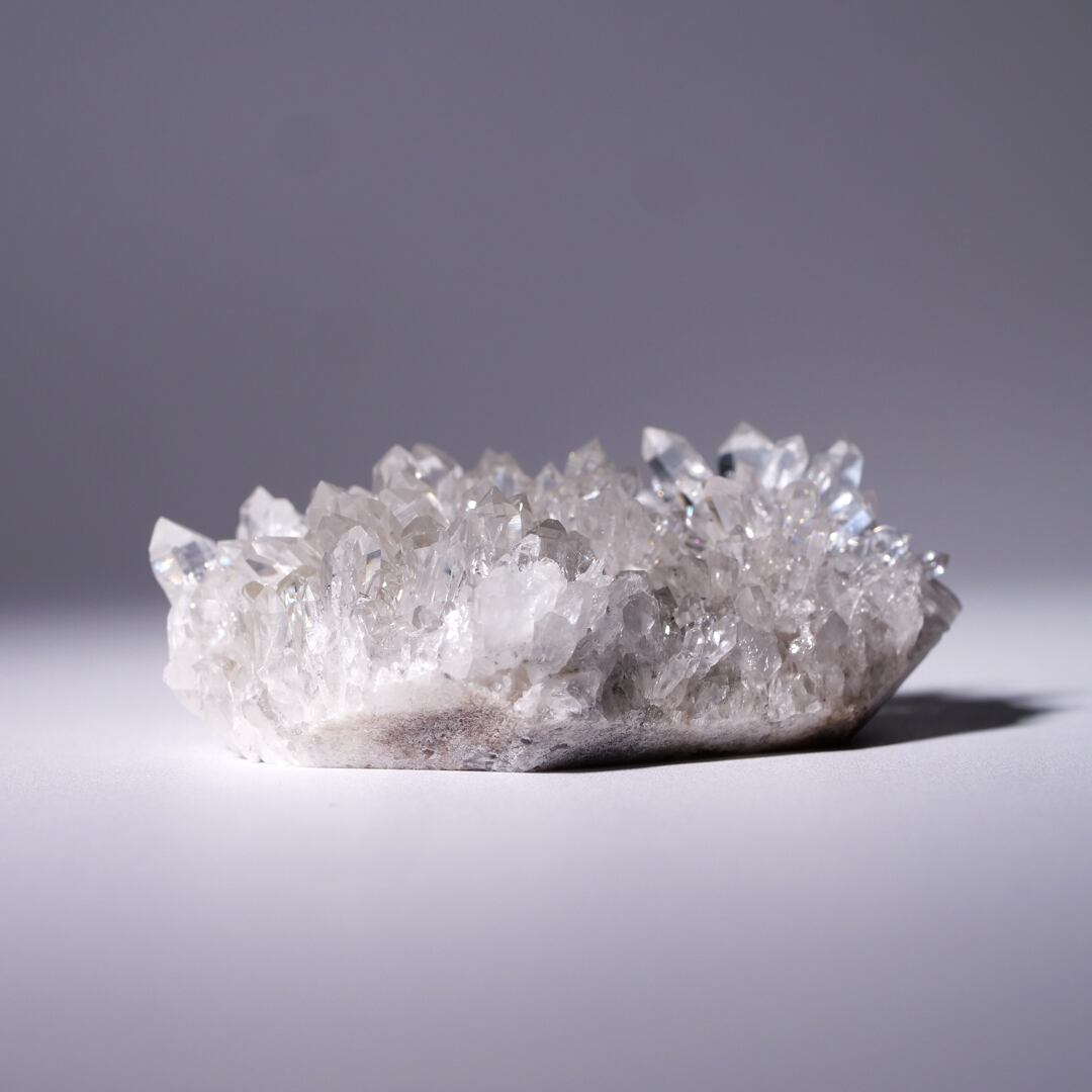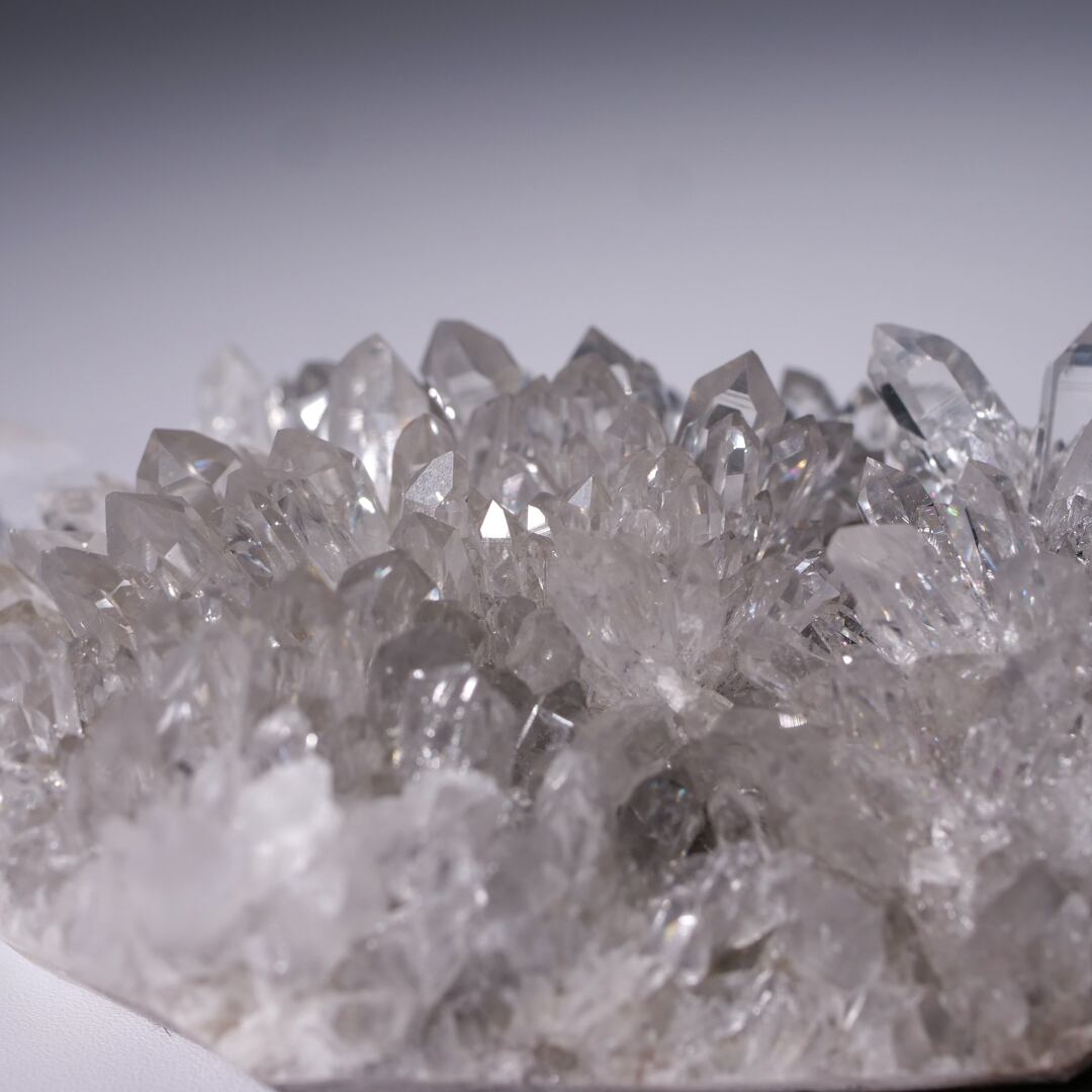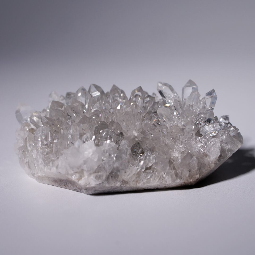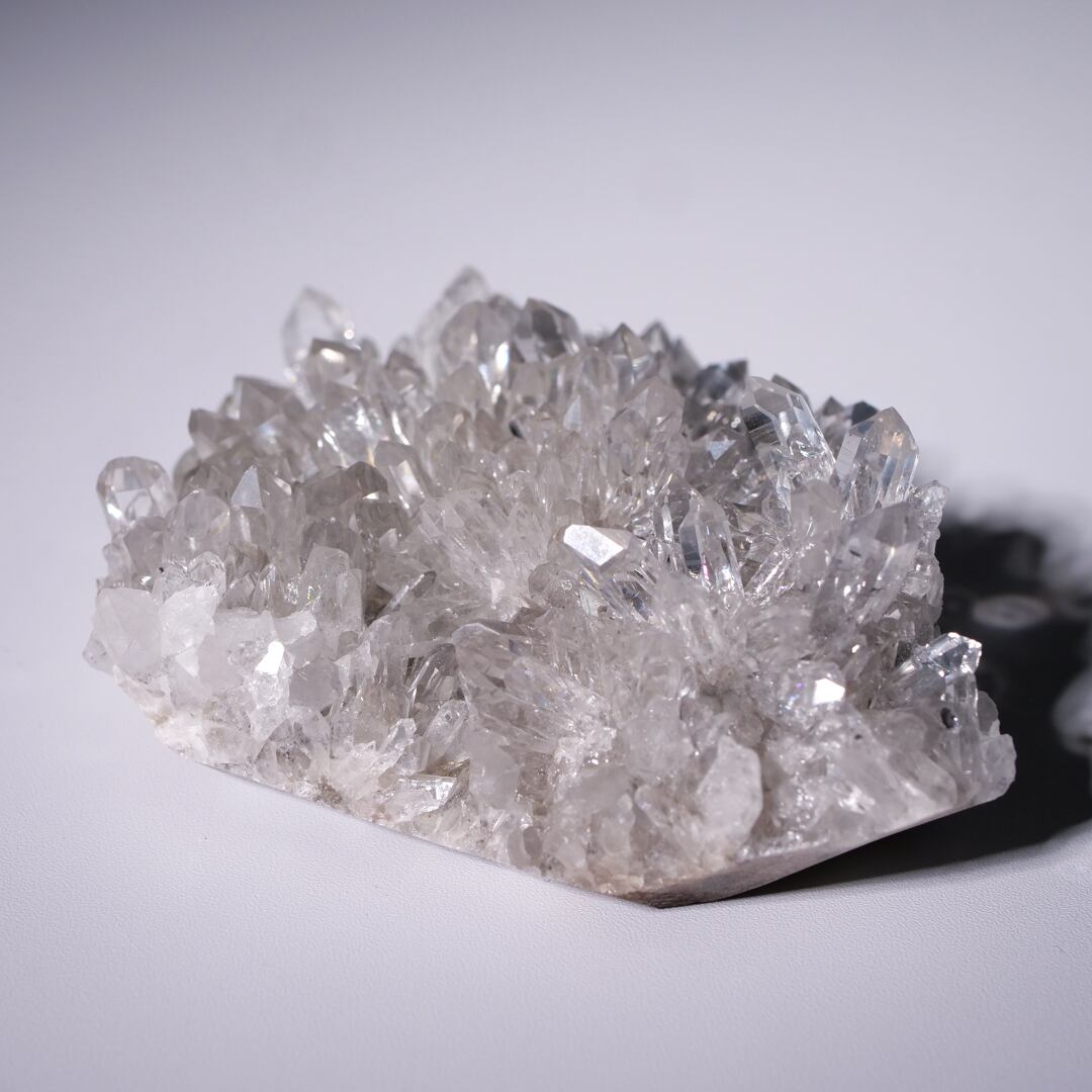 中国・四川省産の水晶クラスターは細身の結晶と高い透明度が特徴です。