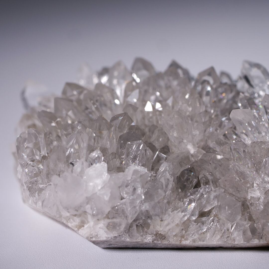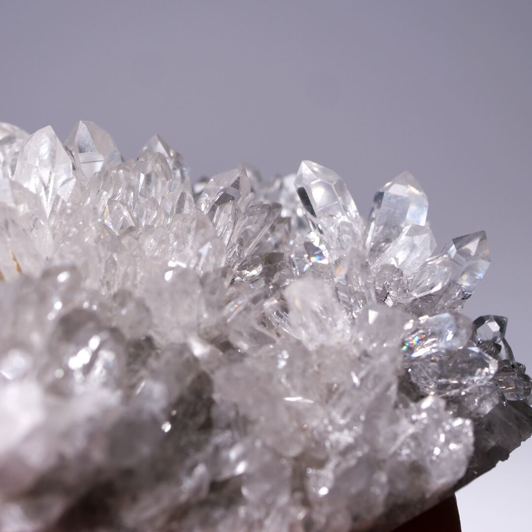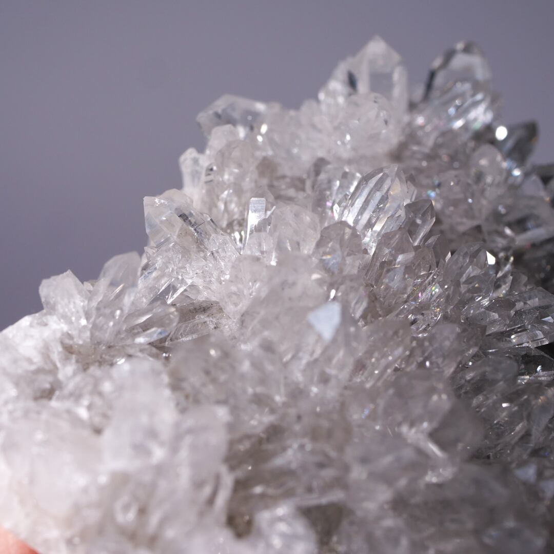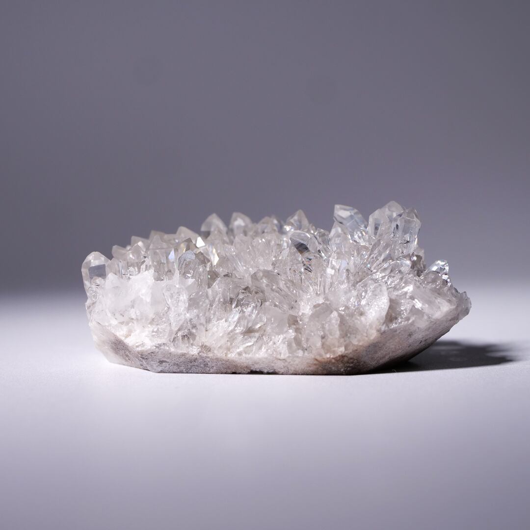中国・四川省産の水晶クラスターは細身の結晶と高い透明度が特徴です。