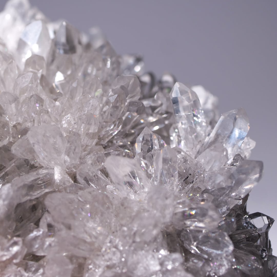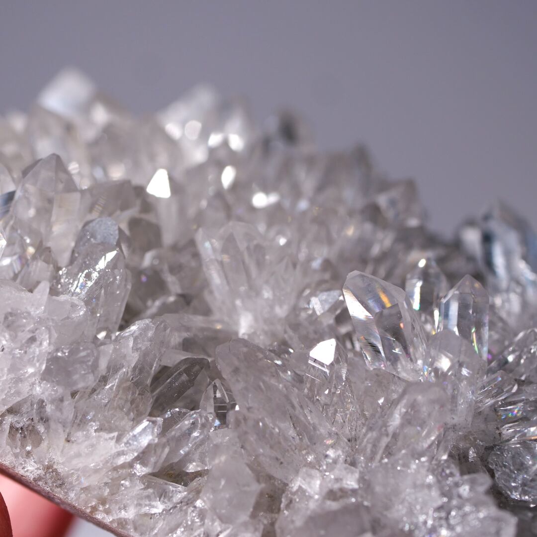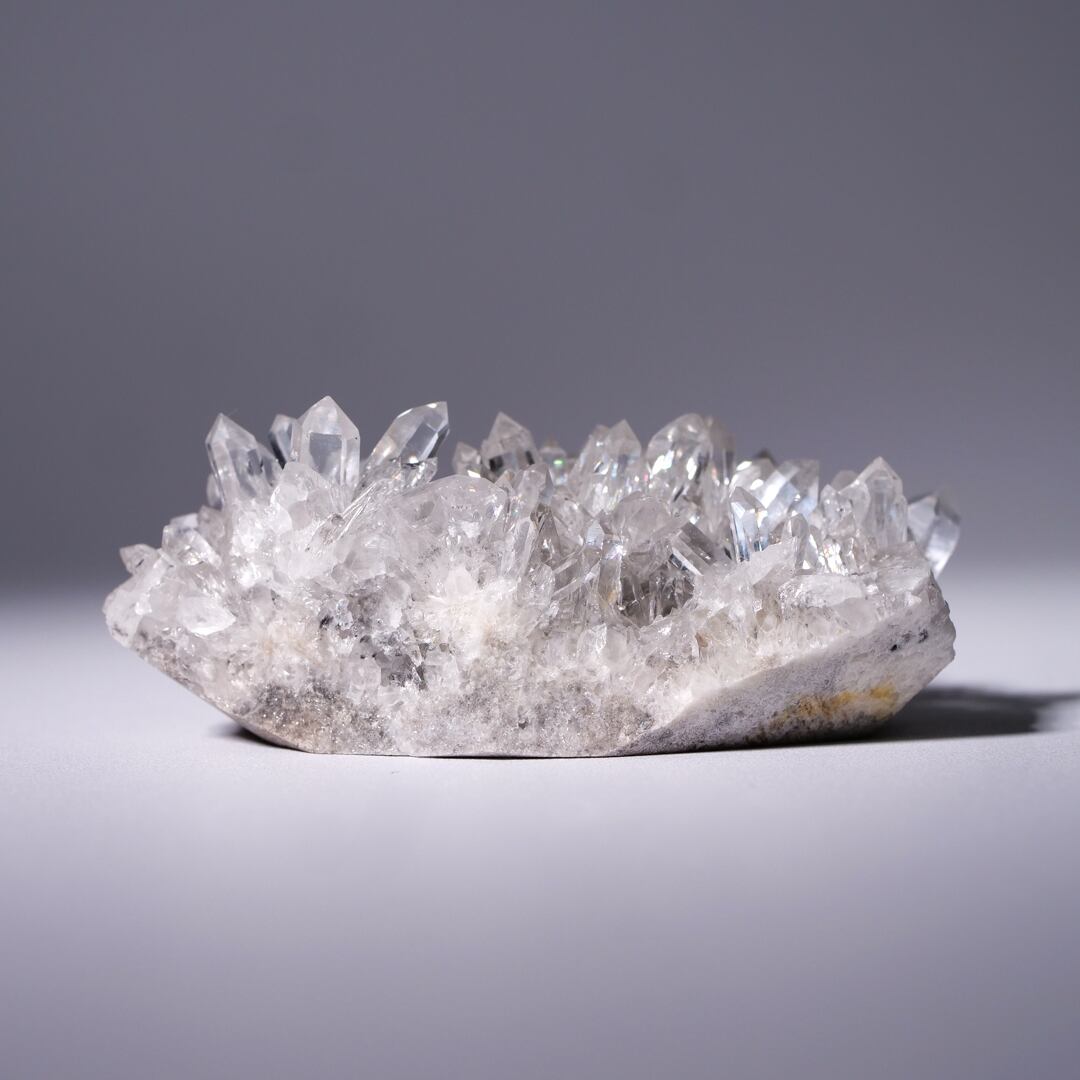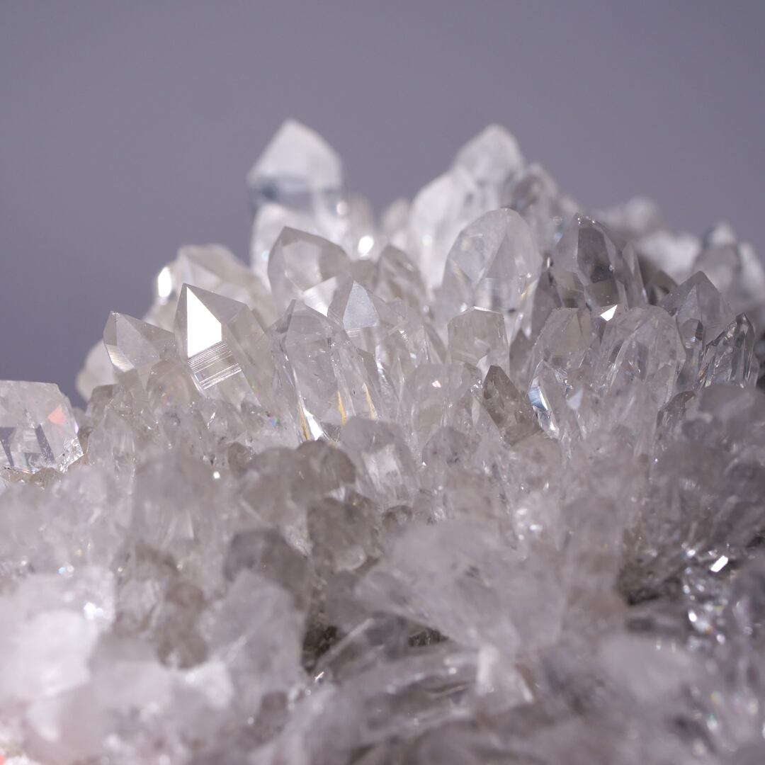 中国・四川省産の水晶クラスターは細身の結晶と高い透明度が特徴です。