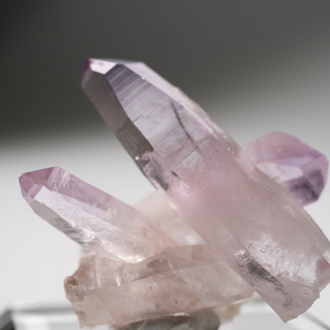 他のアメシストとは異なり、透明度のある淡い紫色・細長い結晶が特徴で、世界一美しいアメジストと言われています。