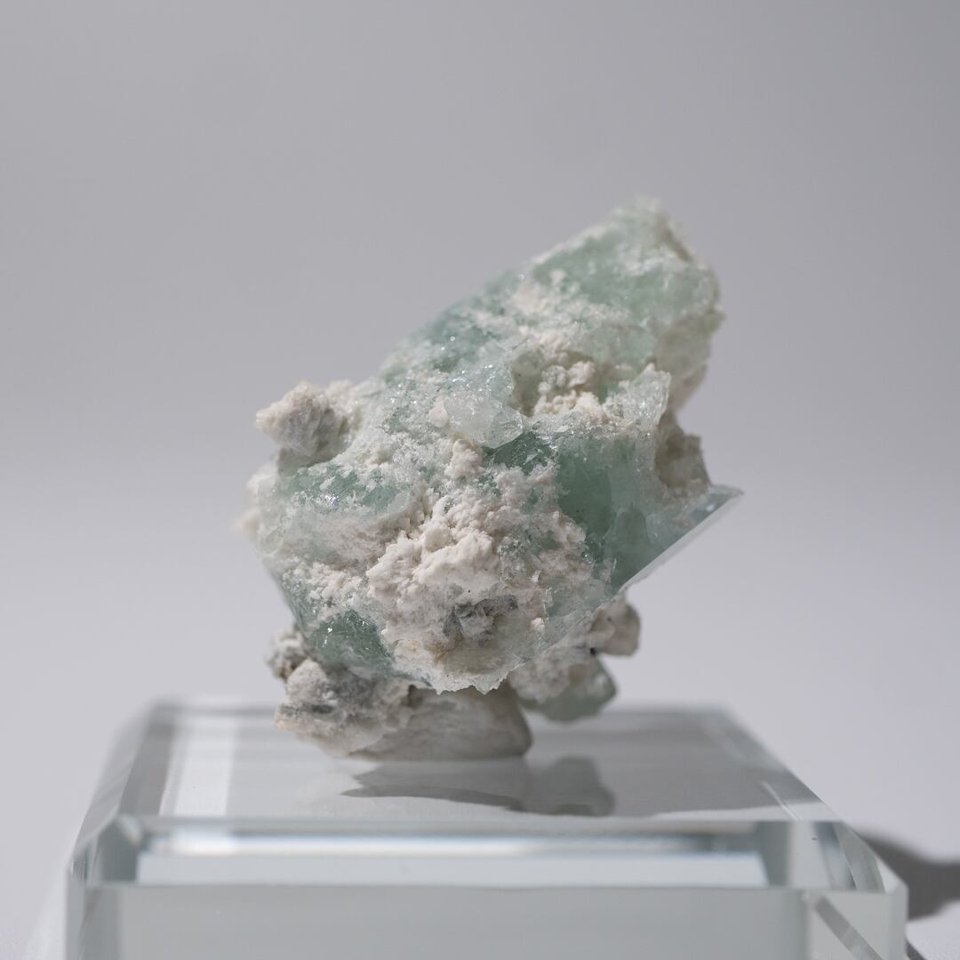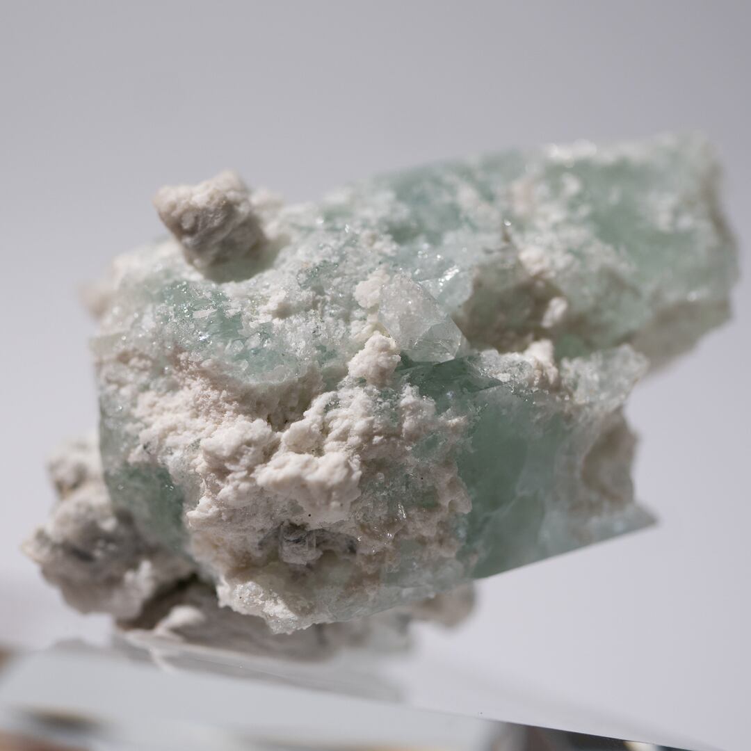 結晶を取り巻く白い母岩は、小波が生む泡たちが楽しく舞い踊っているかのようです。