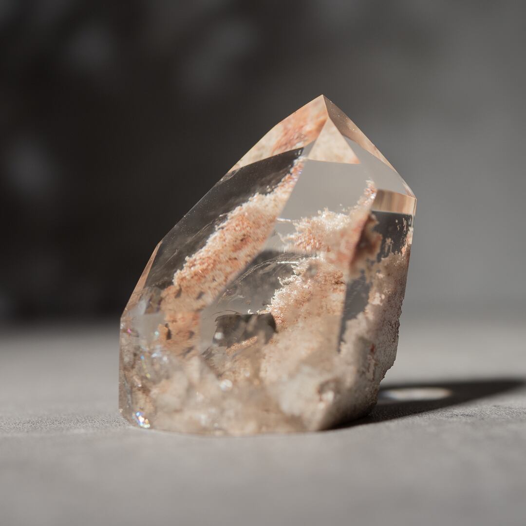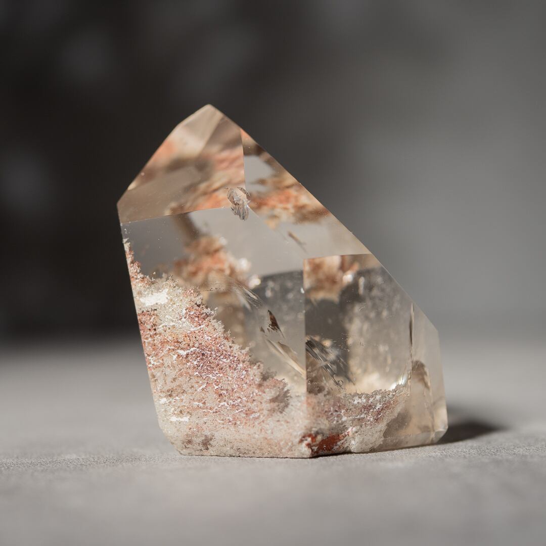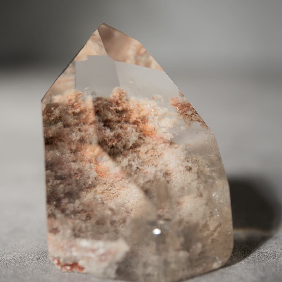 クローライトやトルマリンなど、様々な鉱物を内包した水晶(クォーツ)です。