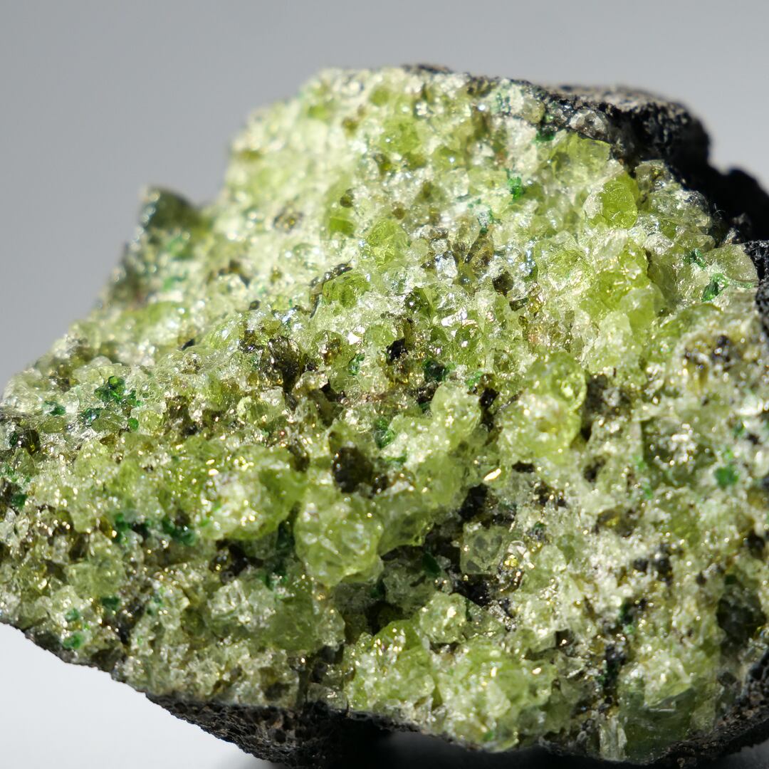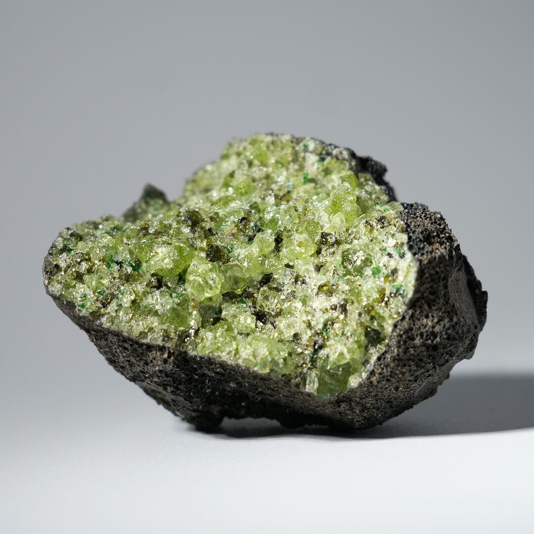 その際に急激な減圧によって細かく砕けてしまうため、このように冷え固まった溶岩と一緒に採掘され、他の天然石と比べて小粒のものが多い点が特徴です。