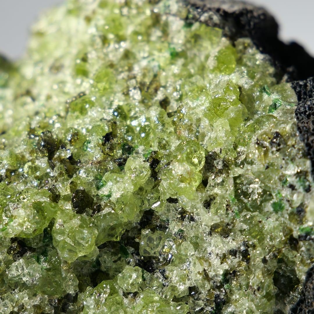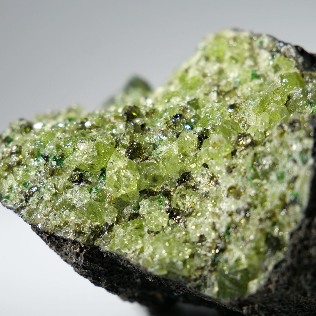 ペリドットの原石であるカンラン石は、地球深部の上部マントルを構成する主要鉱物の一つです。