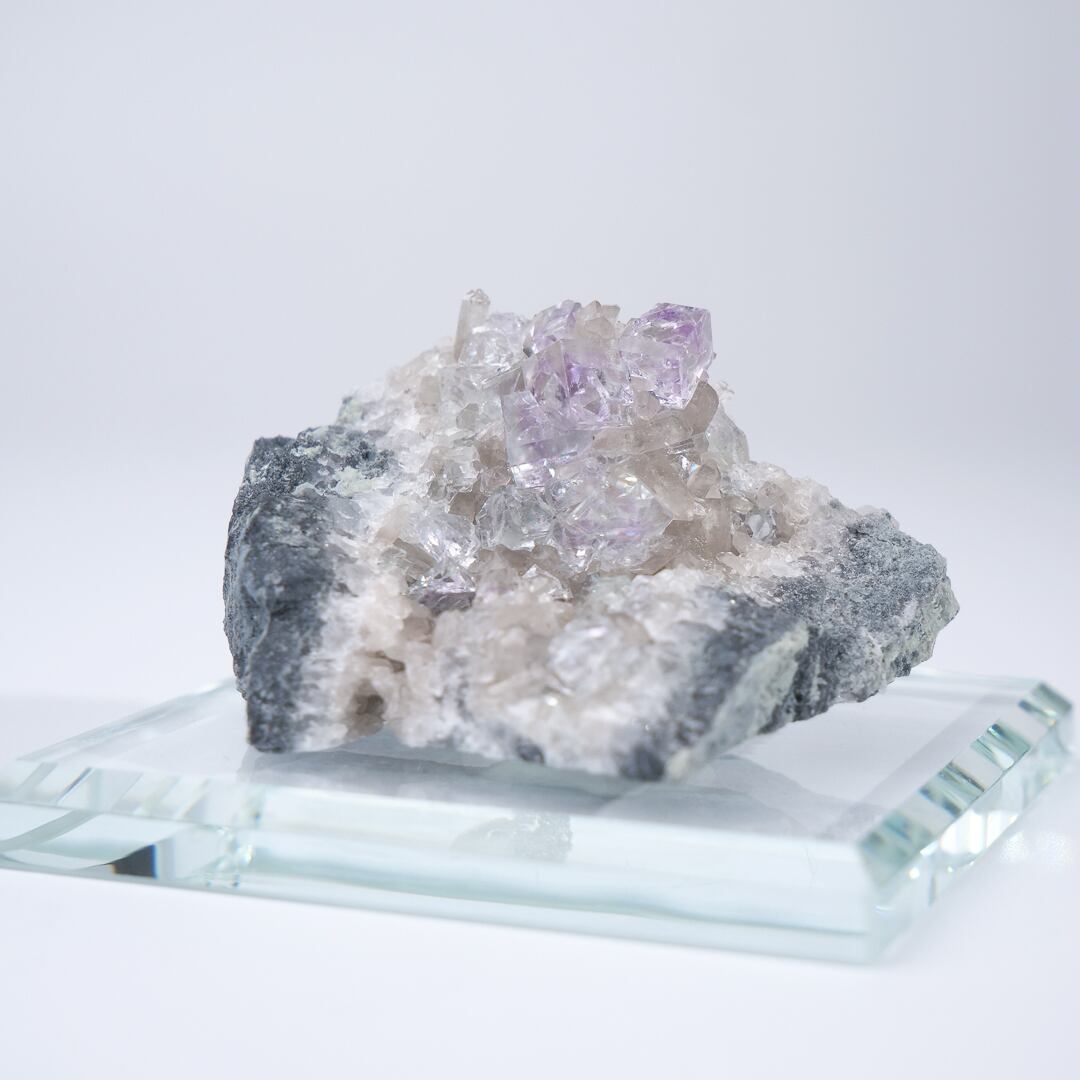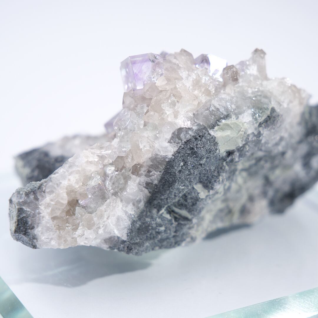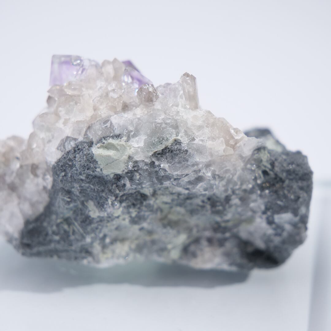 パープルカラーのフローライトと、ライトスモーキークォーツの共生鉱物。