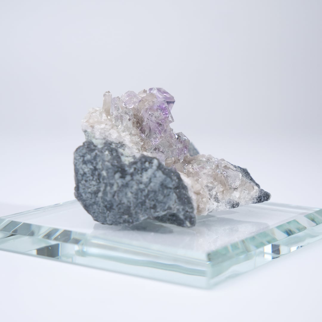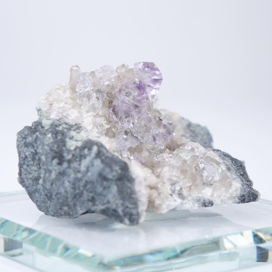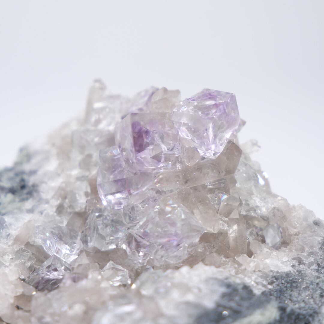 パープルカラーのフローライトと、ライトスモーキークォーツの共生鉱物。