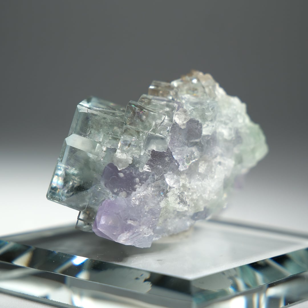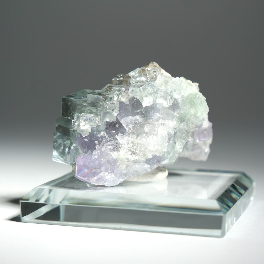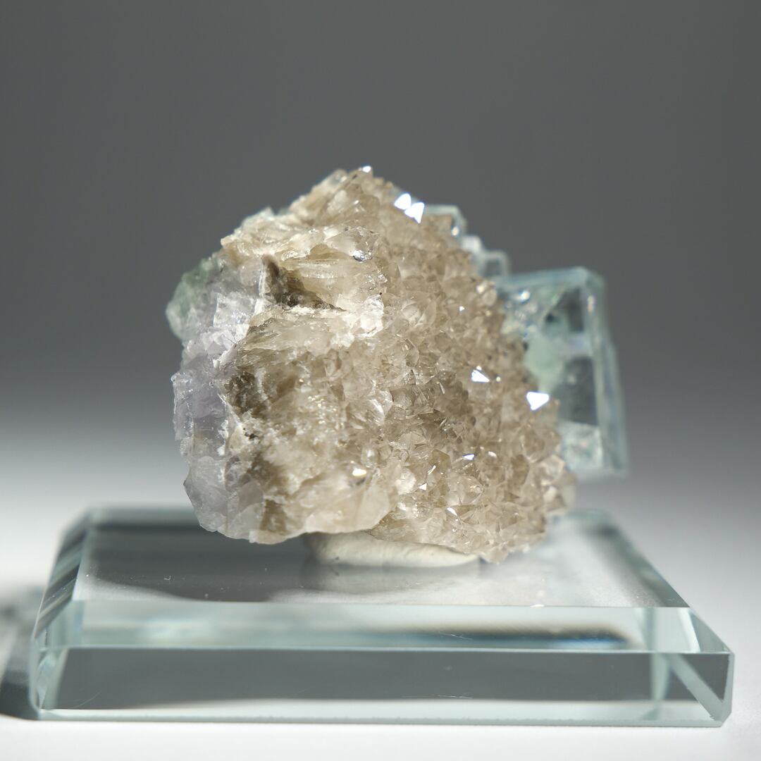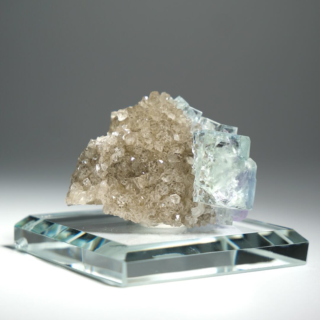 透明度が高いライトグリーンのフローライトと、スモーキークォーツの共生鉱物。