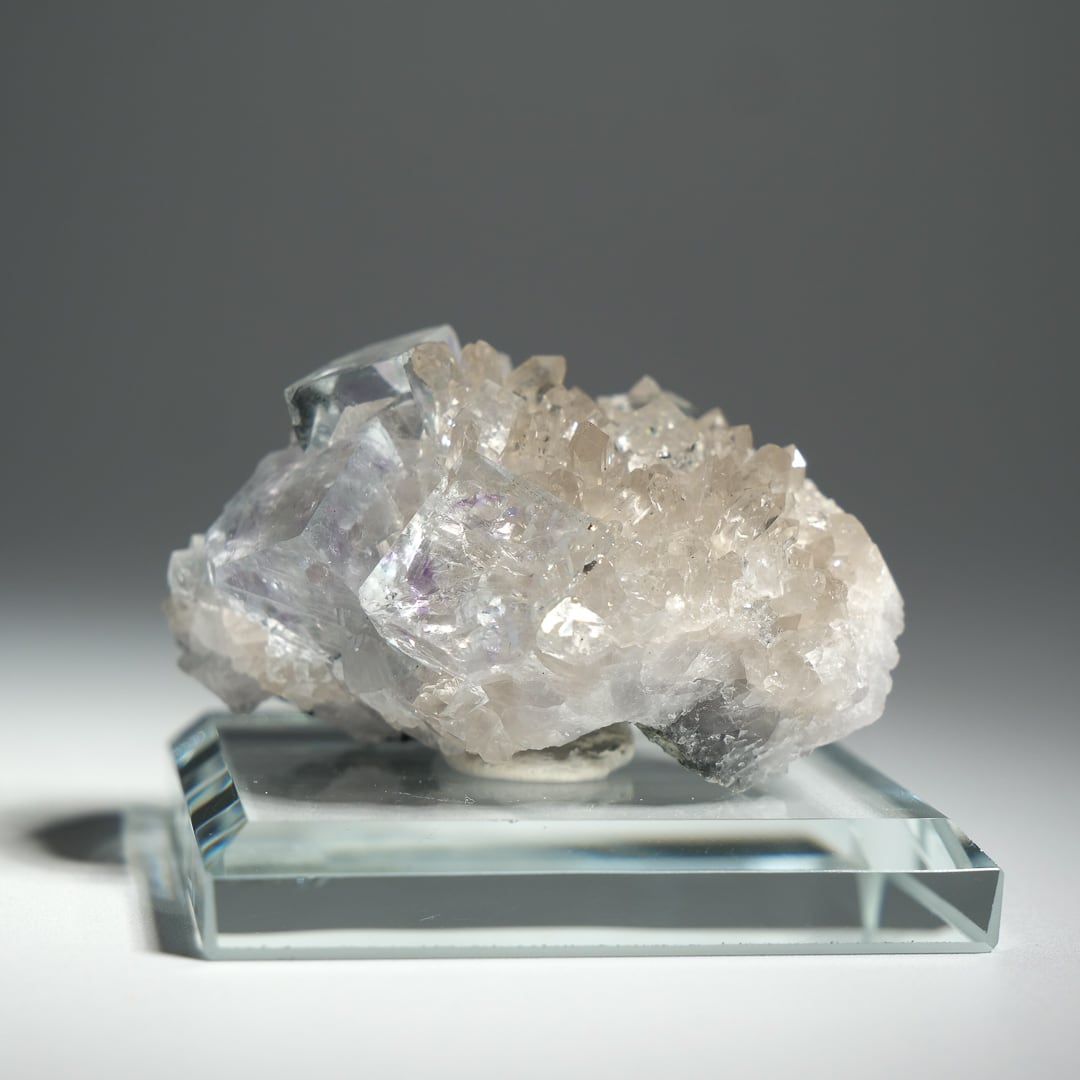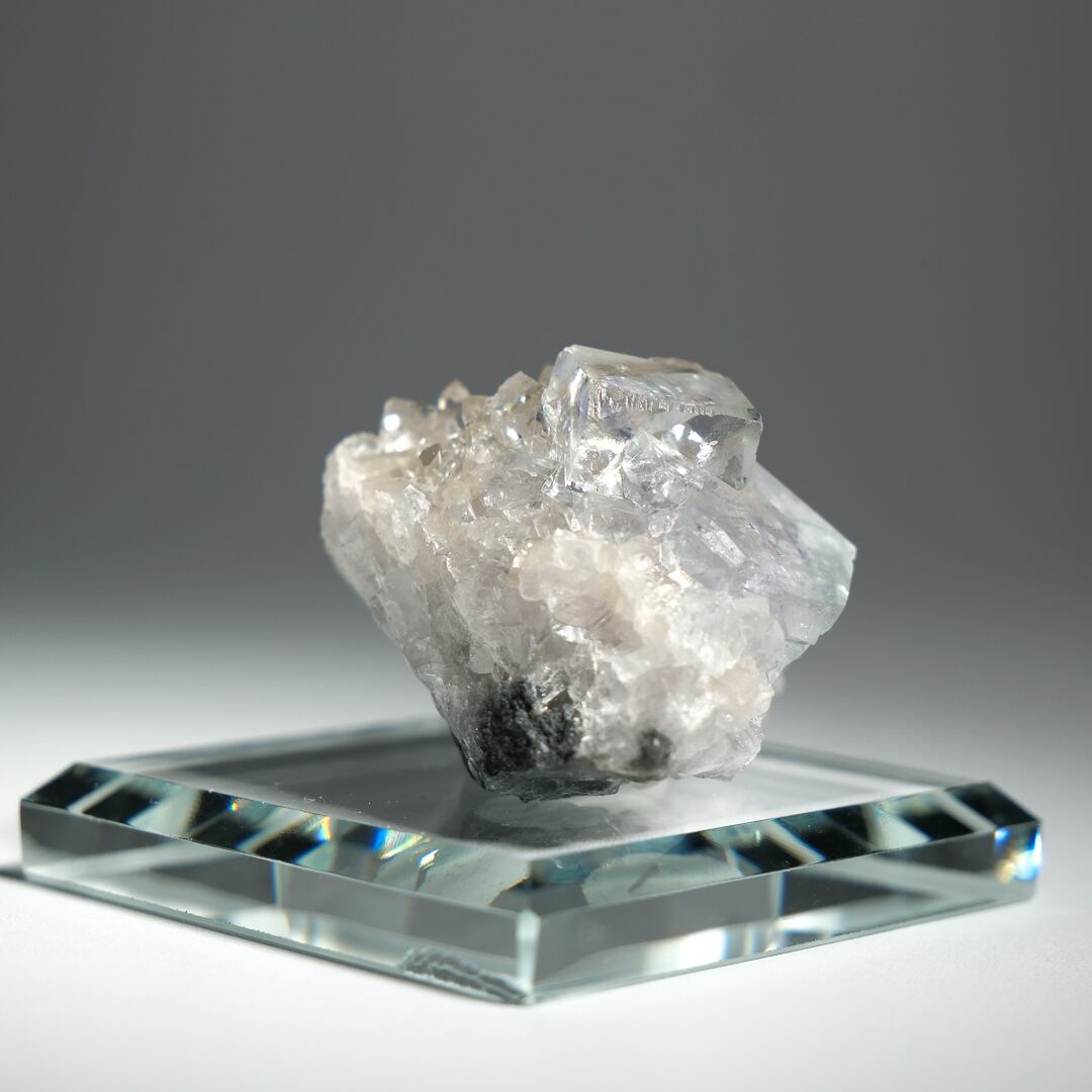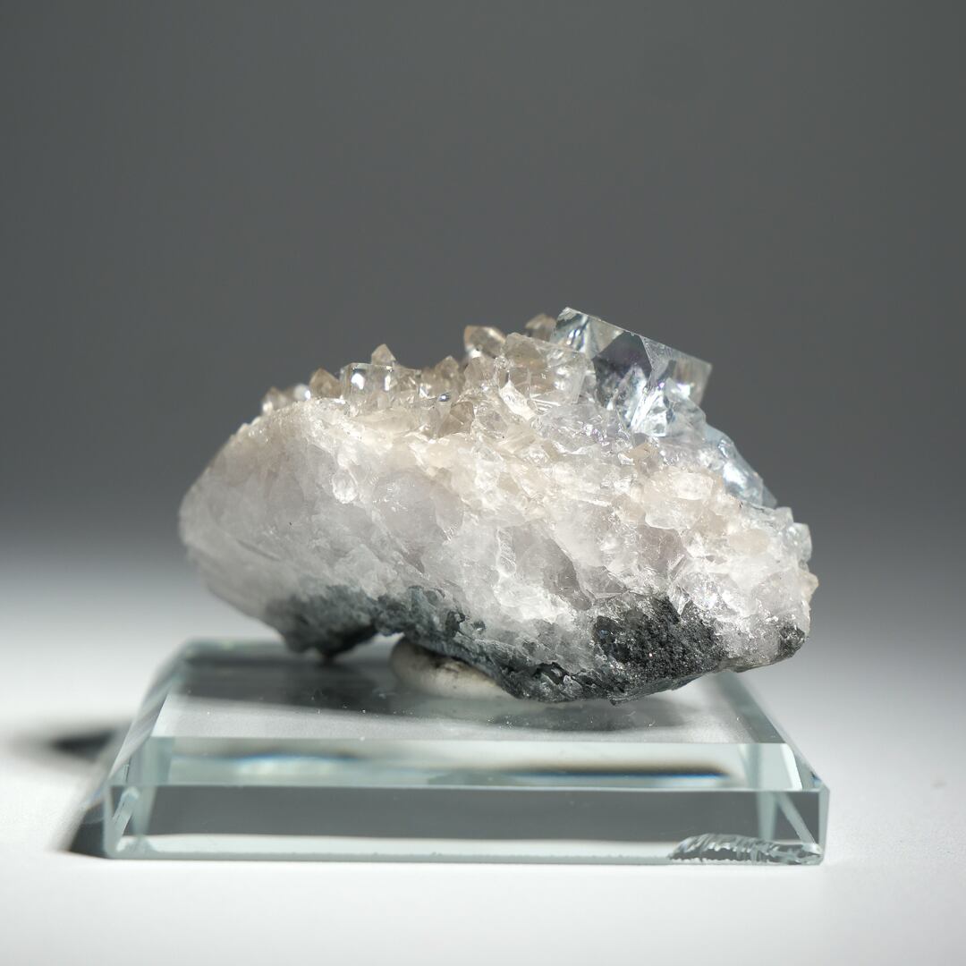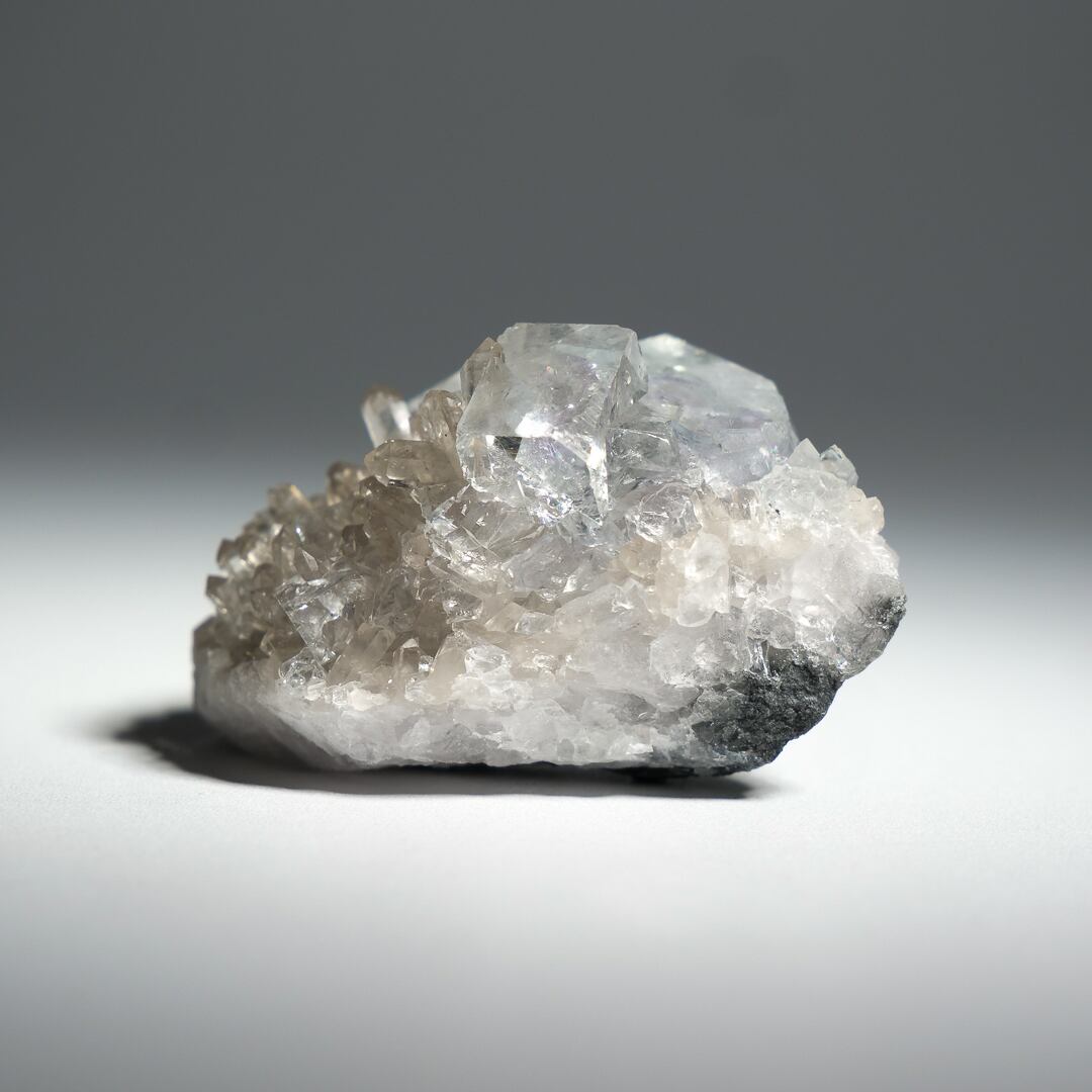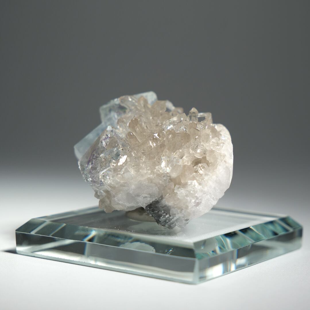 ブルーグリーンのフローライトと、小さなスモーキークォーツの共生鉱物。