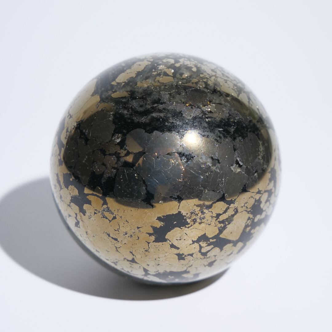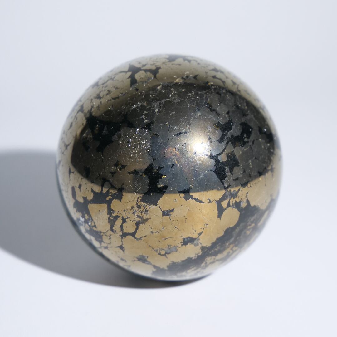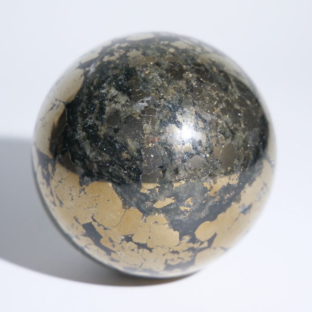 ブラックの母岩部分とゴールドのコントラストが非常にクールなスフィアです。