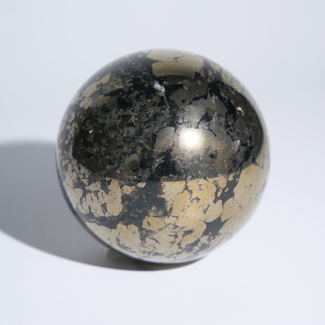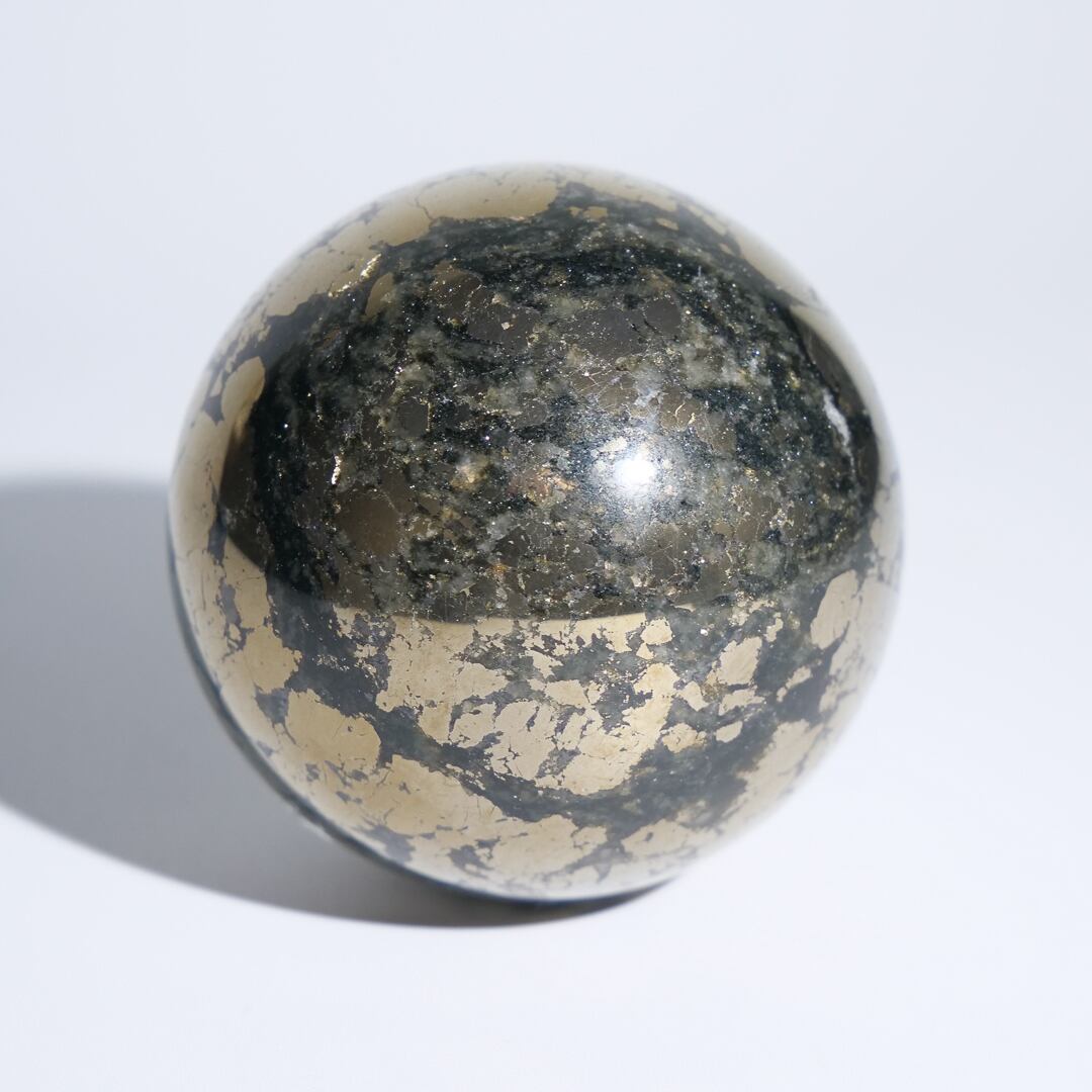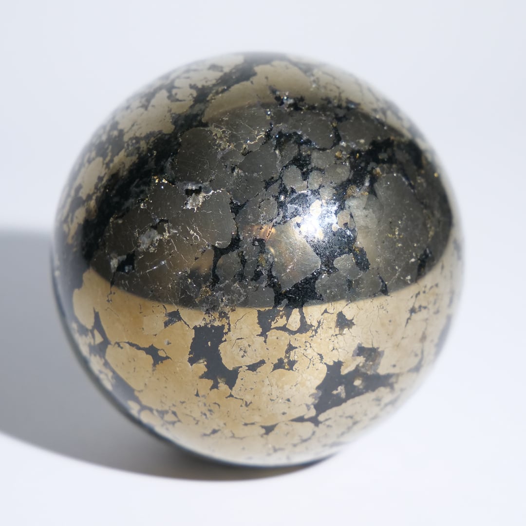ブラックの母岩部分とゴールドのコントラストが非常にクールなスフィアです。