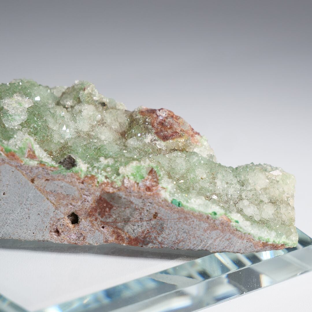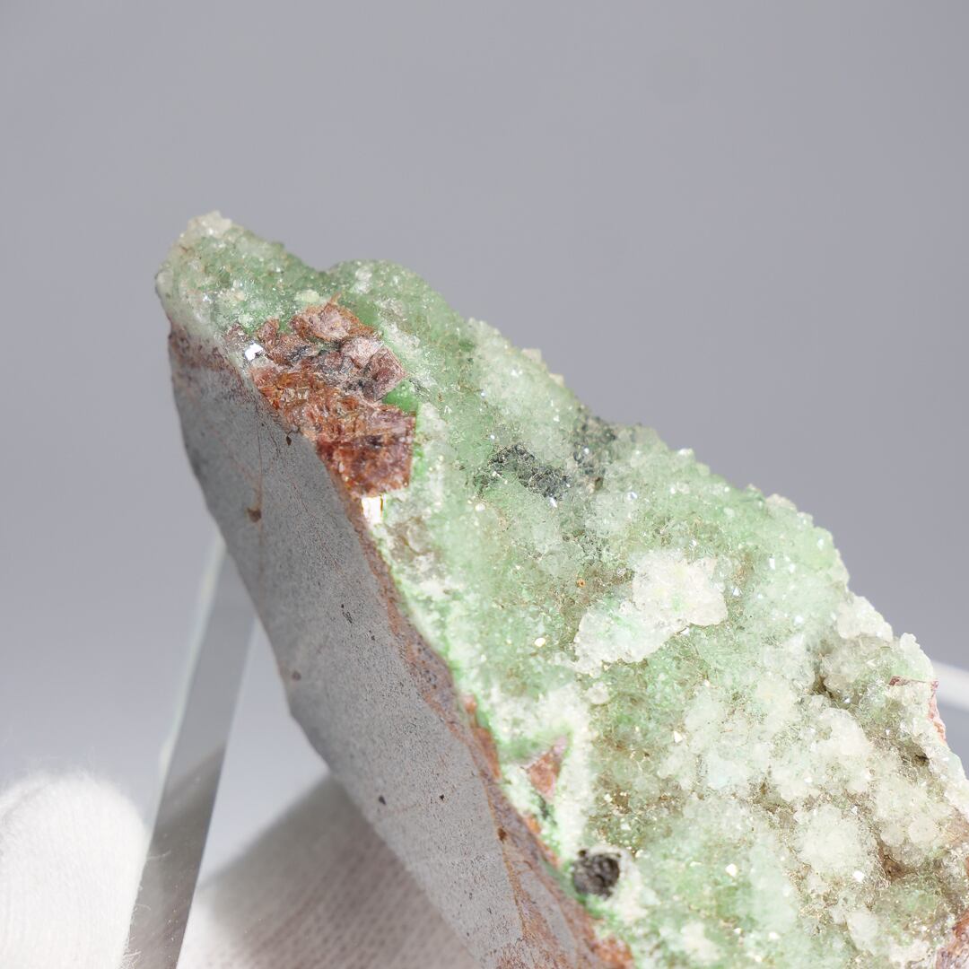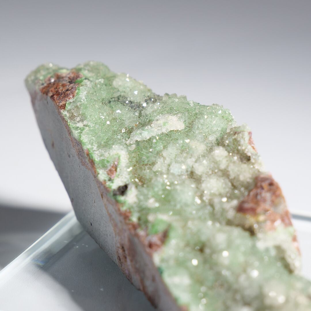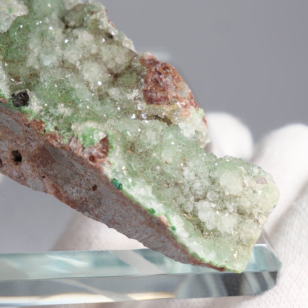 グリーンのマラカイトの上に、キラキラと輝くクォーツの小さな結晶たち。