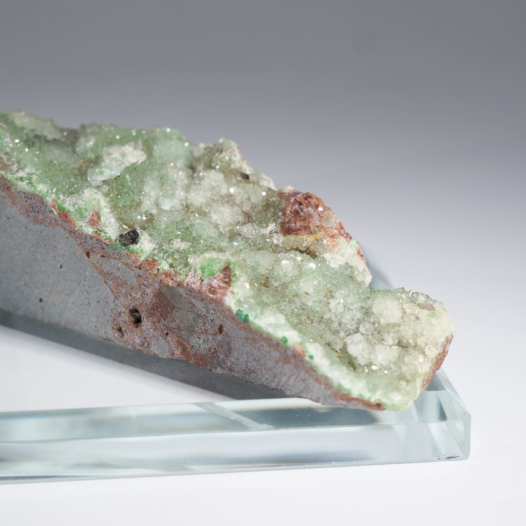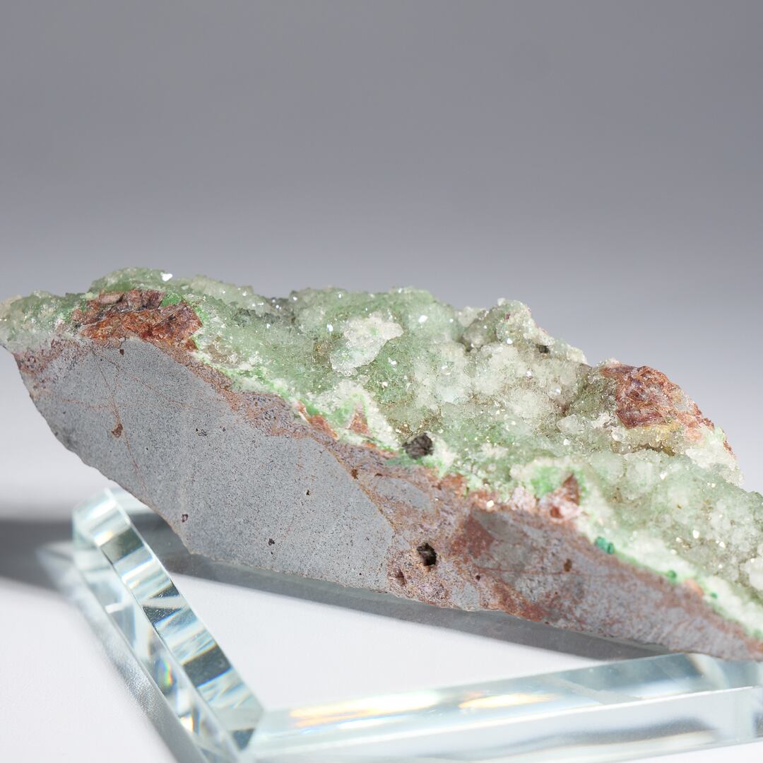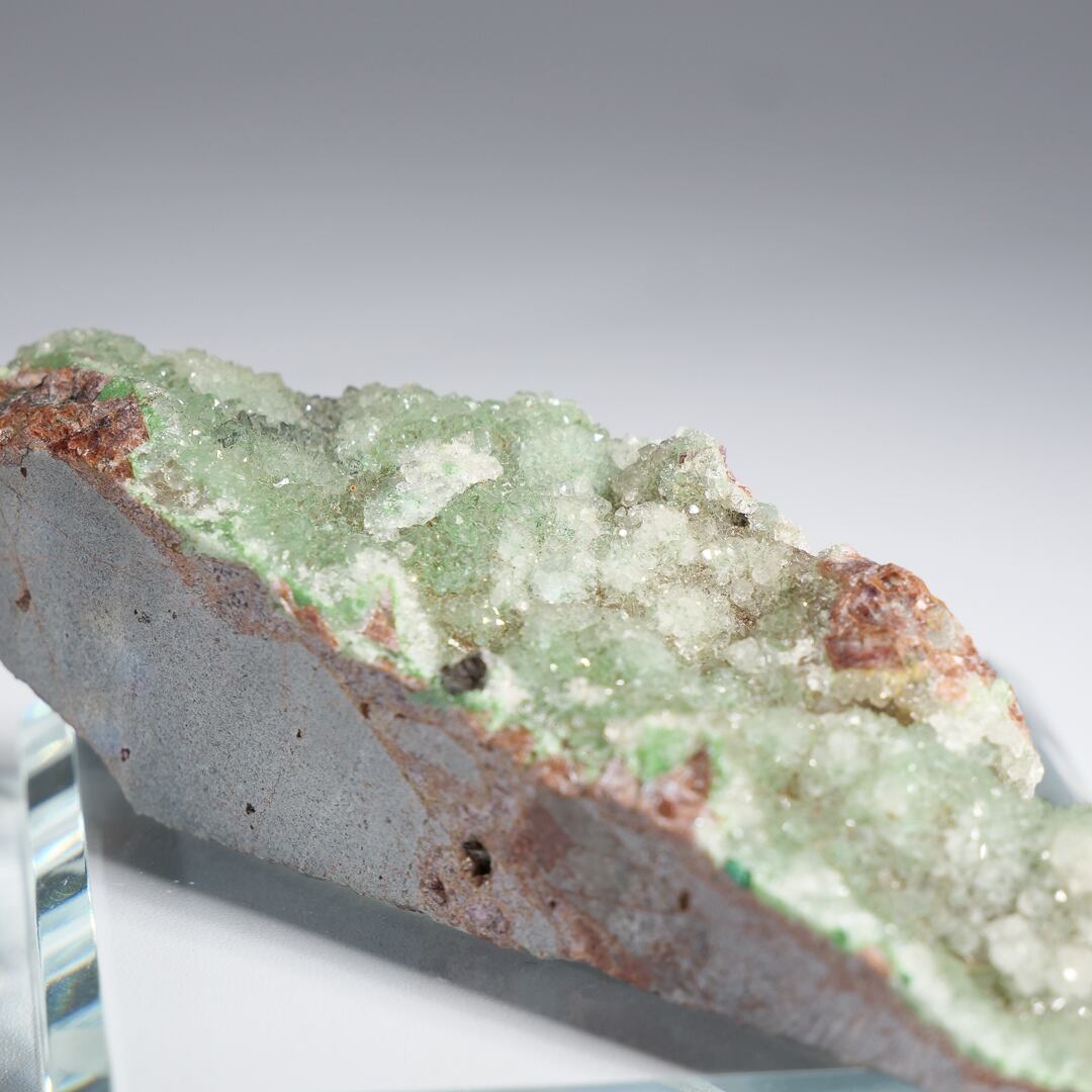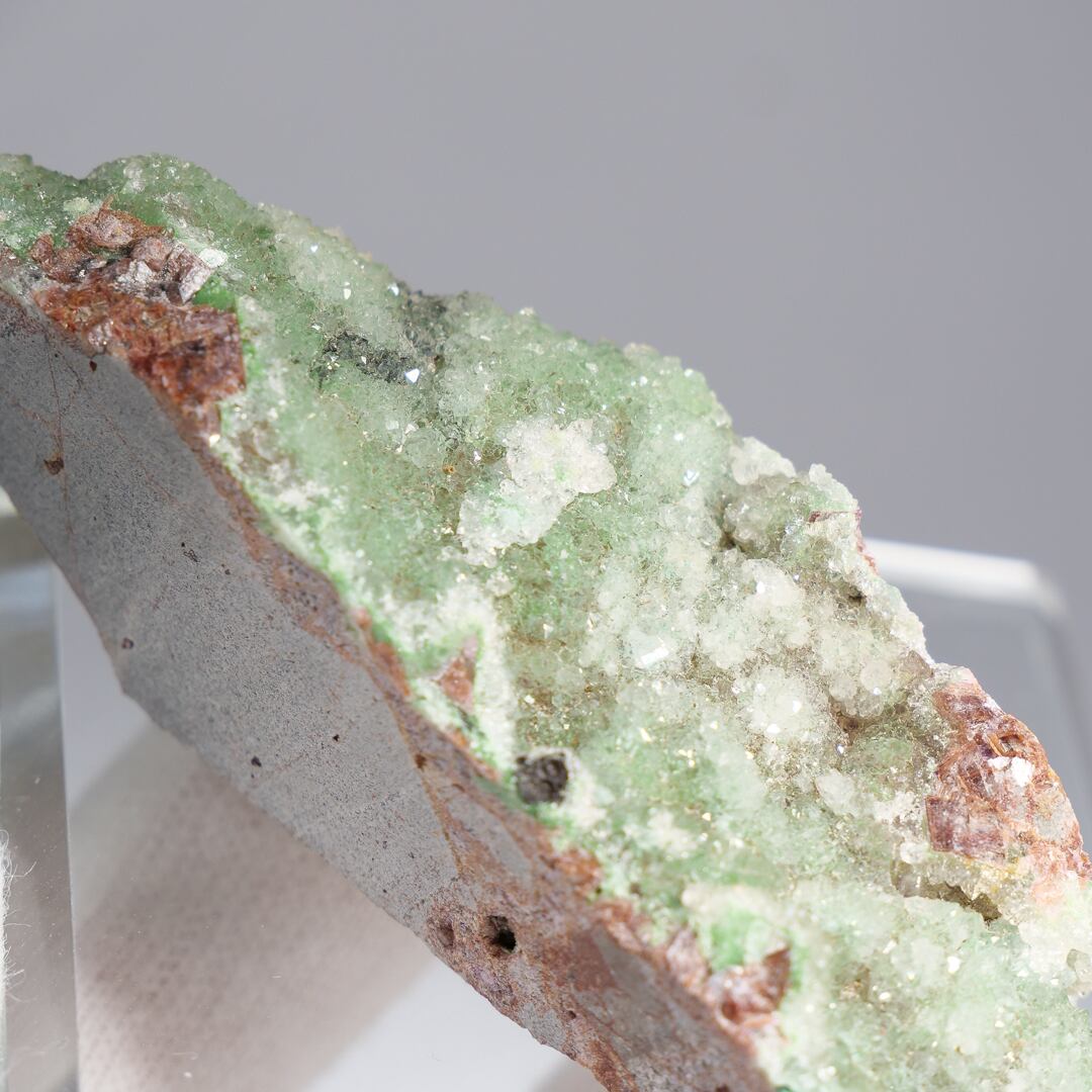 グリーンのマラカイトの上に、キラキラと輝くクォーツの小さな結晶たち。
