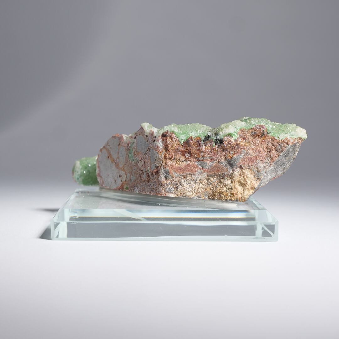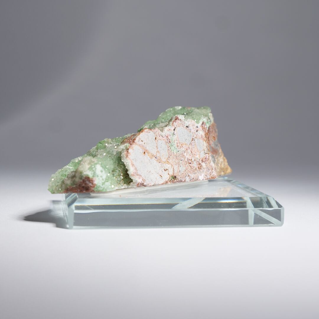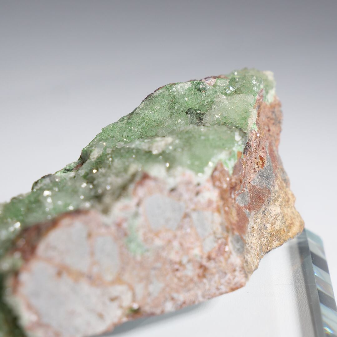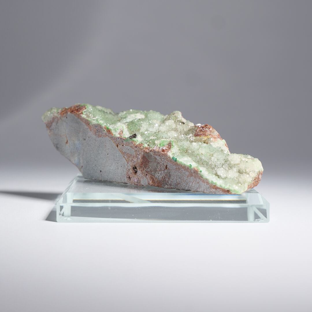 グリーンのマラカイトの上に、キラキラと輝くクォーツの小さな結晶たち。