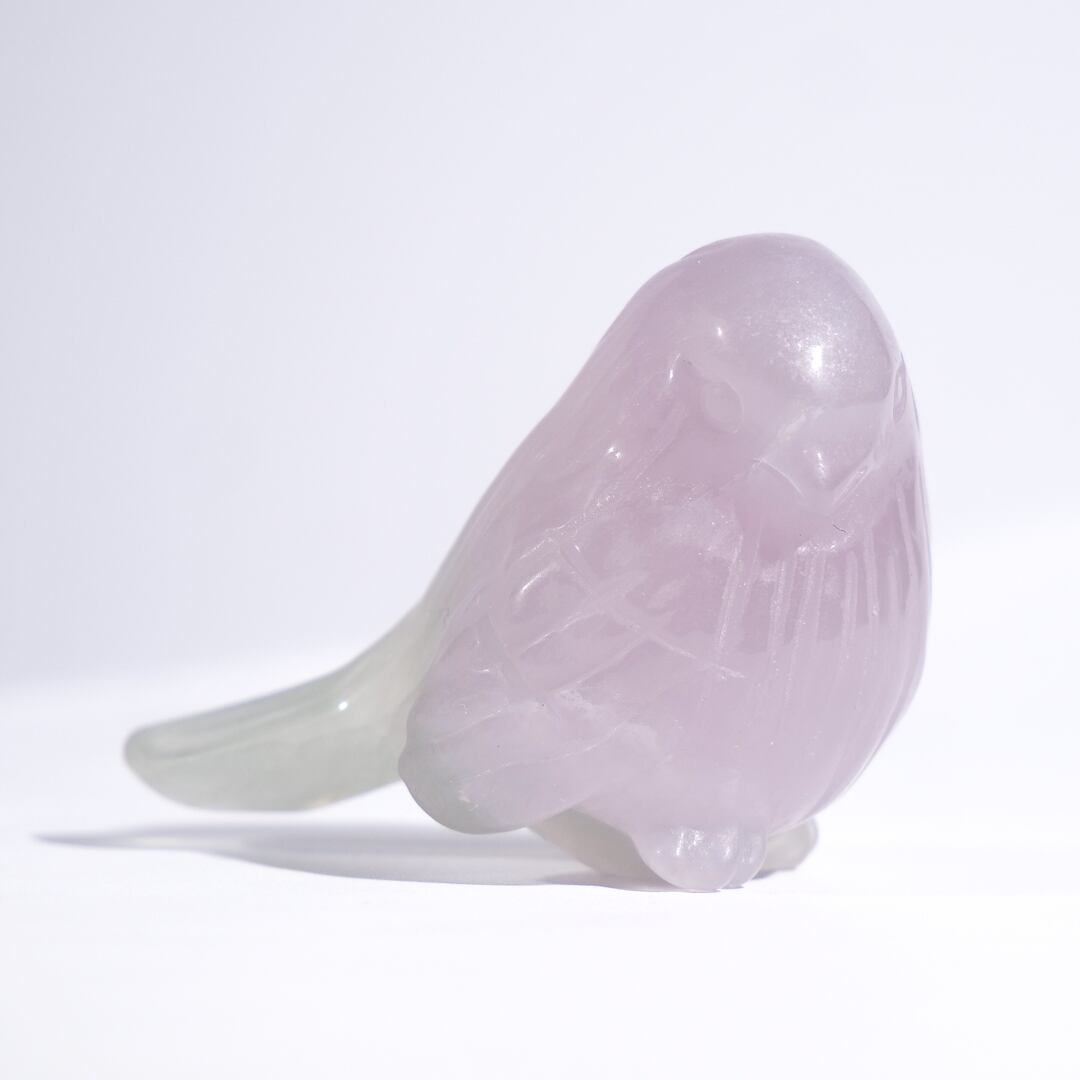 可愛らしい声が聞こえてきそうな、手彫りの小鳥。