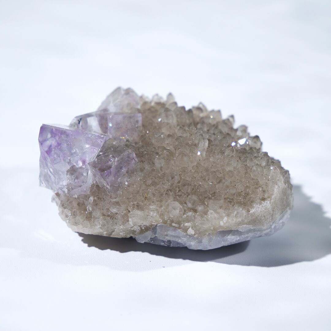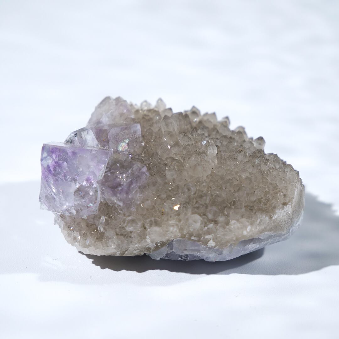 パープルのフローライトと、スモーキークォーツの共生鉱物。