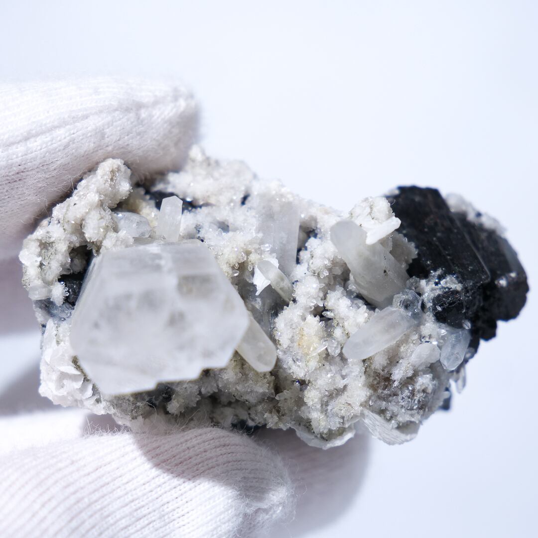 ヤオガンシャン産 ブラックトルマリン クォーツ 共生 / 原石 標本【H_1】